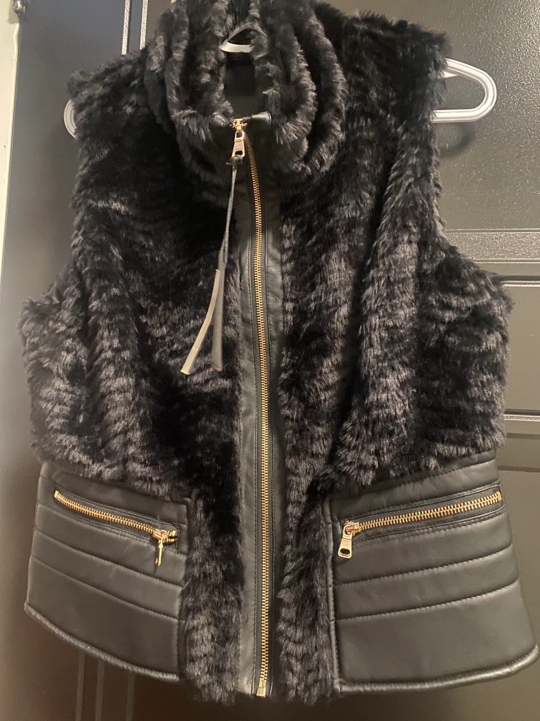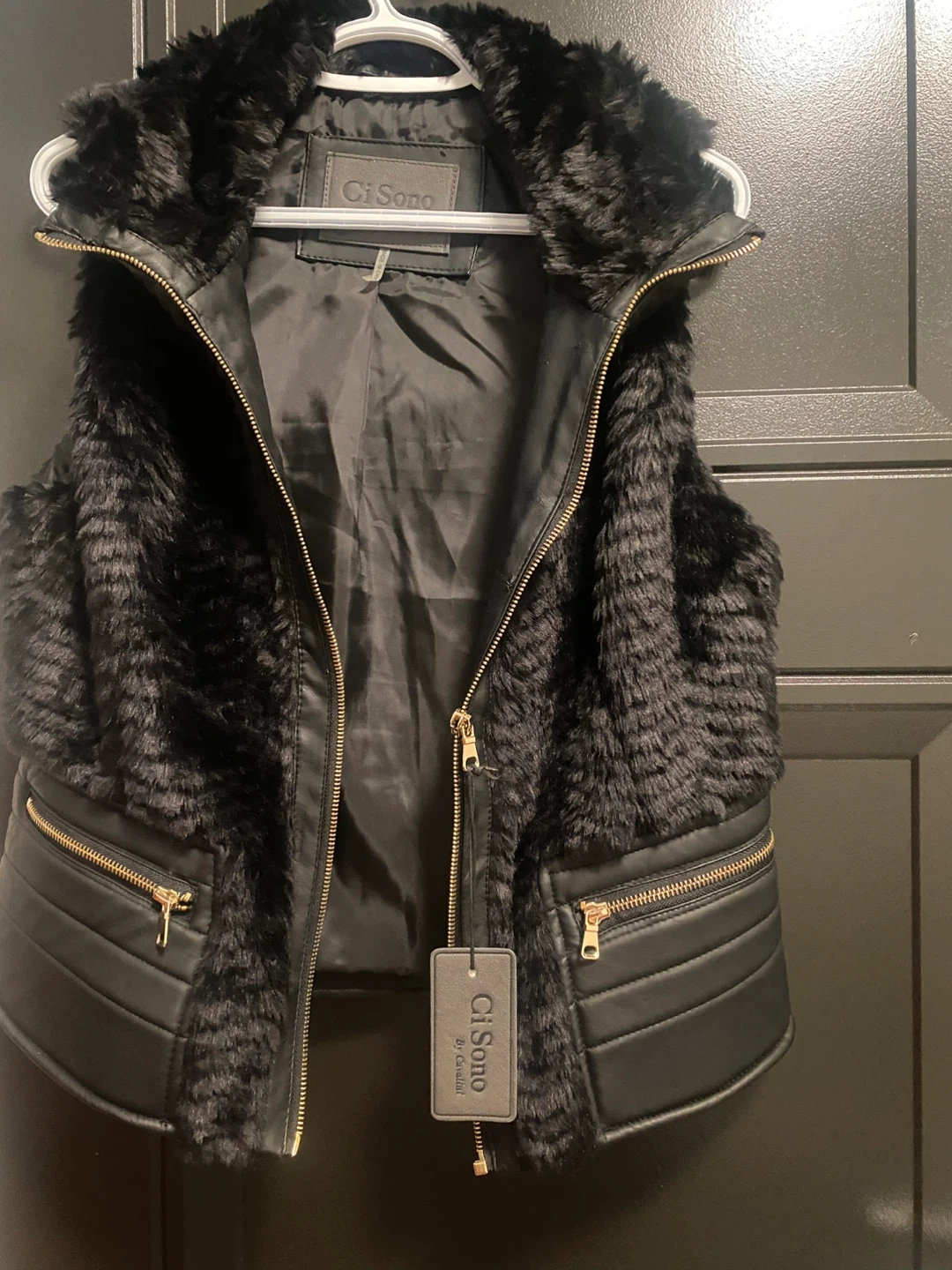 New / Unused Ci Sono Black Faux Fur & Faux Leather Vest