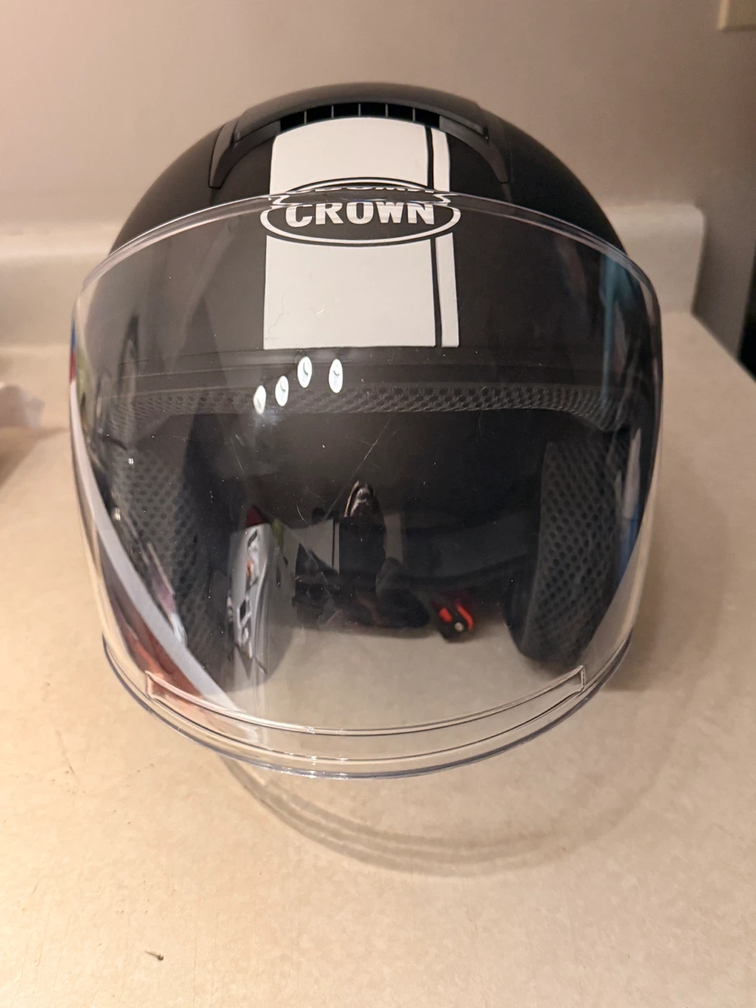 Buy & SellCrown Motorcycle Helmet with VisorCrown Motorcycle Helmet with Visor$60Black motorcycle helmet from Crown with a clear visor and white racing stripes. It's a stylish helmet for your rides. Ensure your safety on the road!ConditionNewWHERE TO MEETCheck LocationView MapSELLERverifiedAshleyDowntown923 reviews0 chats·0 favorites·11 viewsSEND CHAT TO SELLERHi Ashley! I’m interested in your listing.Hi Ashley! I’m interested in your listing.Get the Karrot app to chatSign In to chat