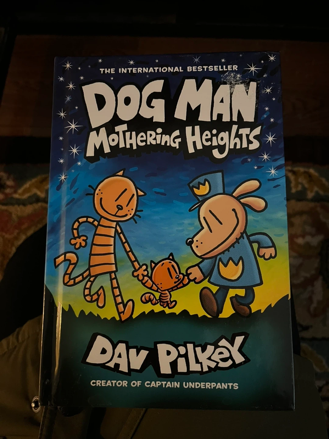 This is "Dog Man: Mothering Heights," an international bestseller written by Dav Pilkey. It's part of the popular Dog Man series. This hardcover book is suitable for young readers.