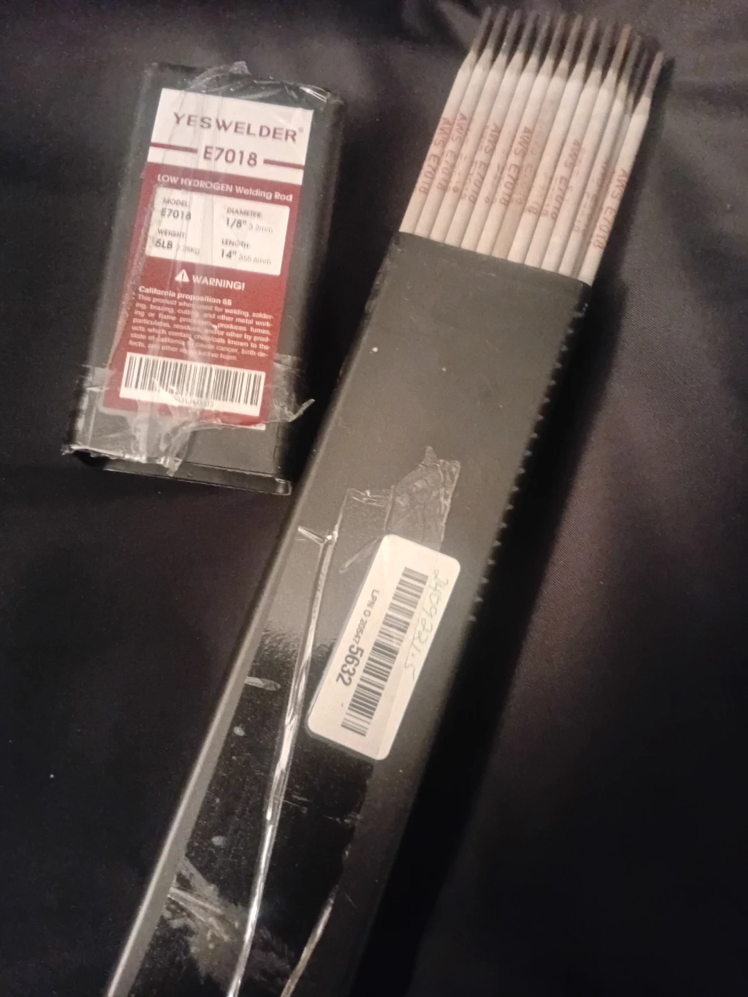 This is a 5lb box of YESWELDER E7018 low hydrogen carbon steel stick welding rods. The diameter is 3/32". They're AWS certified for superior quality welds. The rods come in a professional, strong plastic case for easy storage and to keep them in good condition.