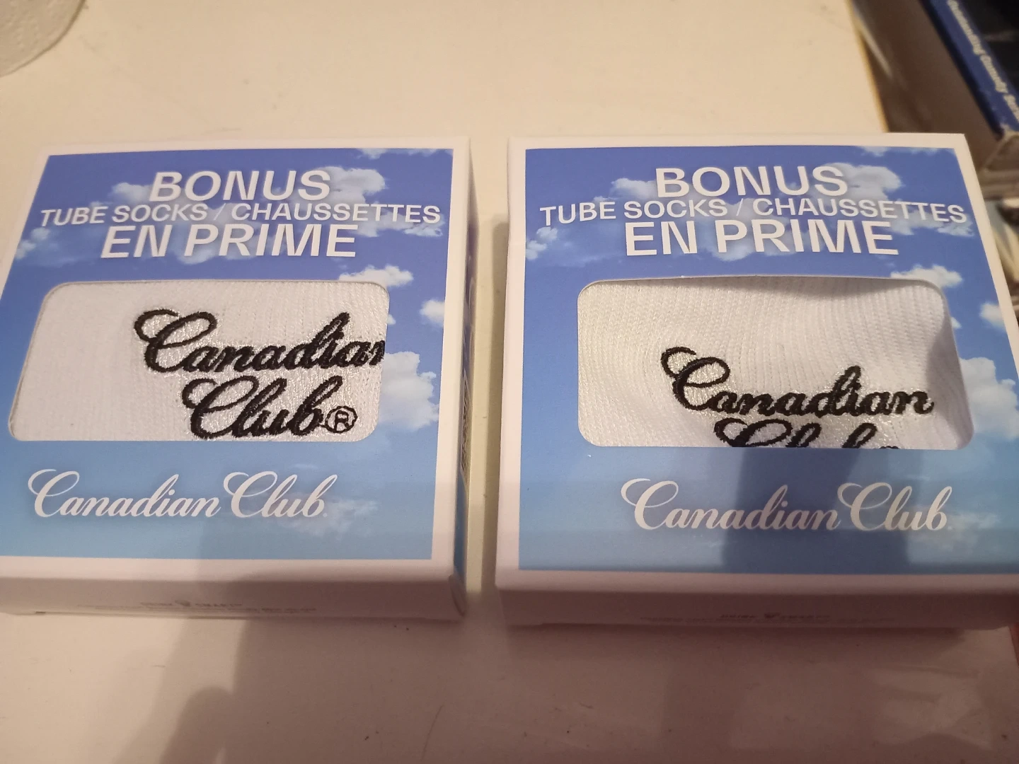 Selling a bonus pair of Canadian Club tube socks! They come in the original packaging. Perfect for any fan of Canadian Club! Asking $30 for both or $15 each.