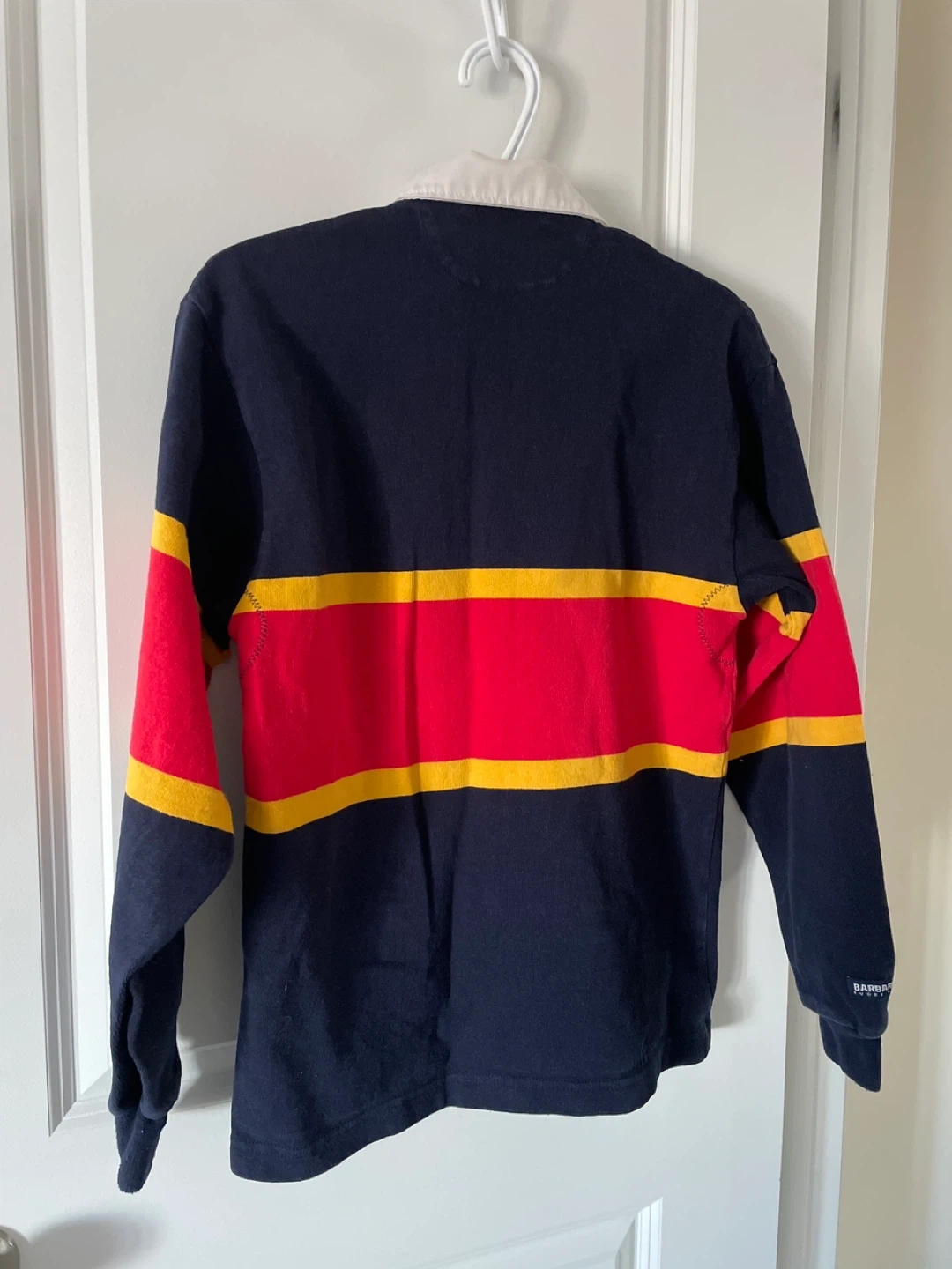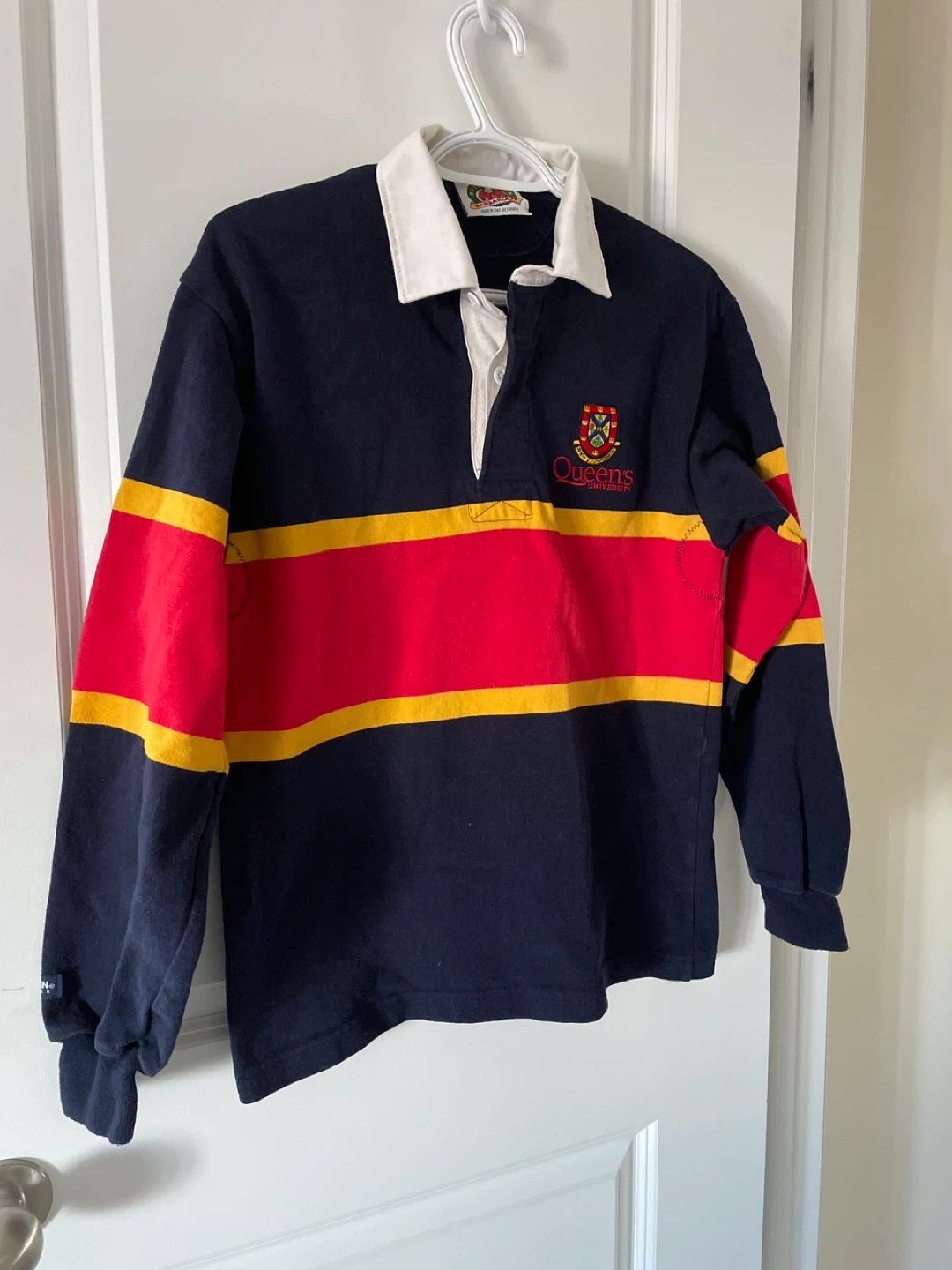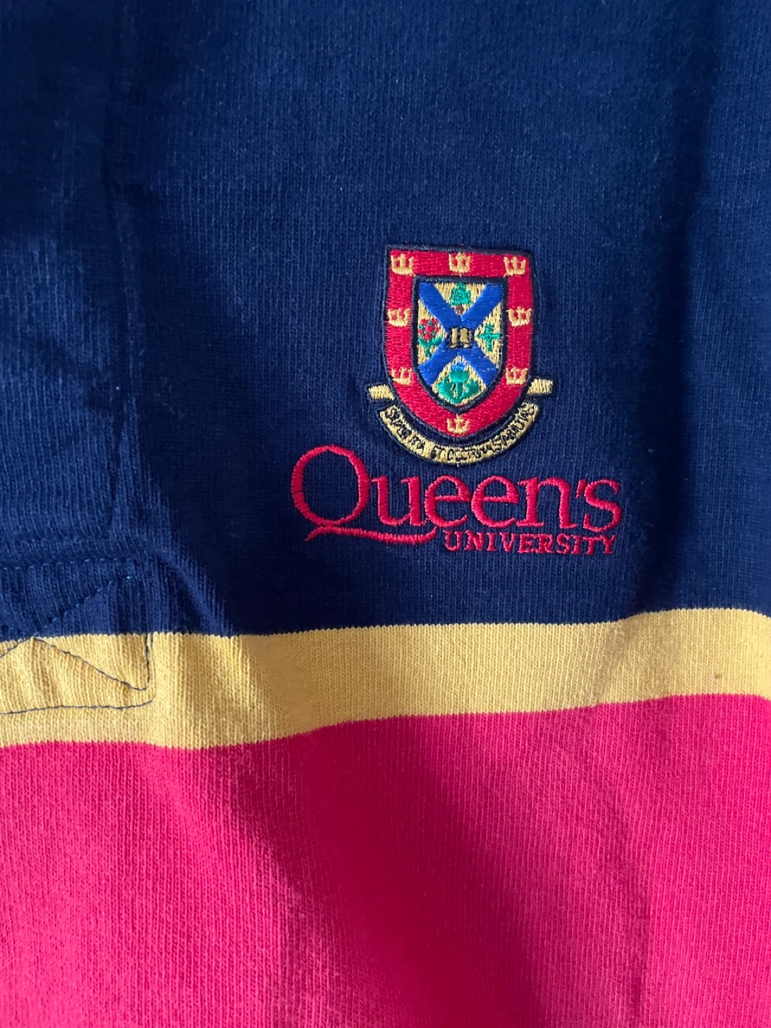 This is a Barbarian Rugby Wear long sleeve shirt featuring the Queens University crest. It's made of 100% preshrunk cotton. Who would use this? Students, alumni, or fans of Queens University!