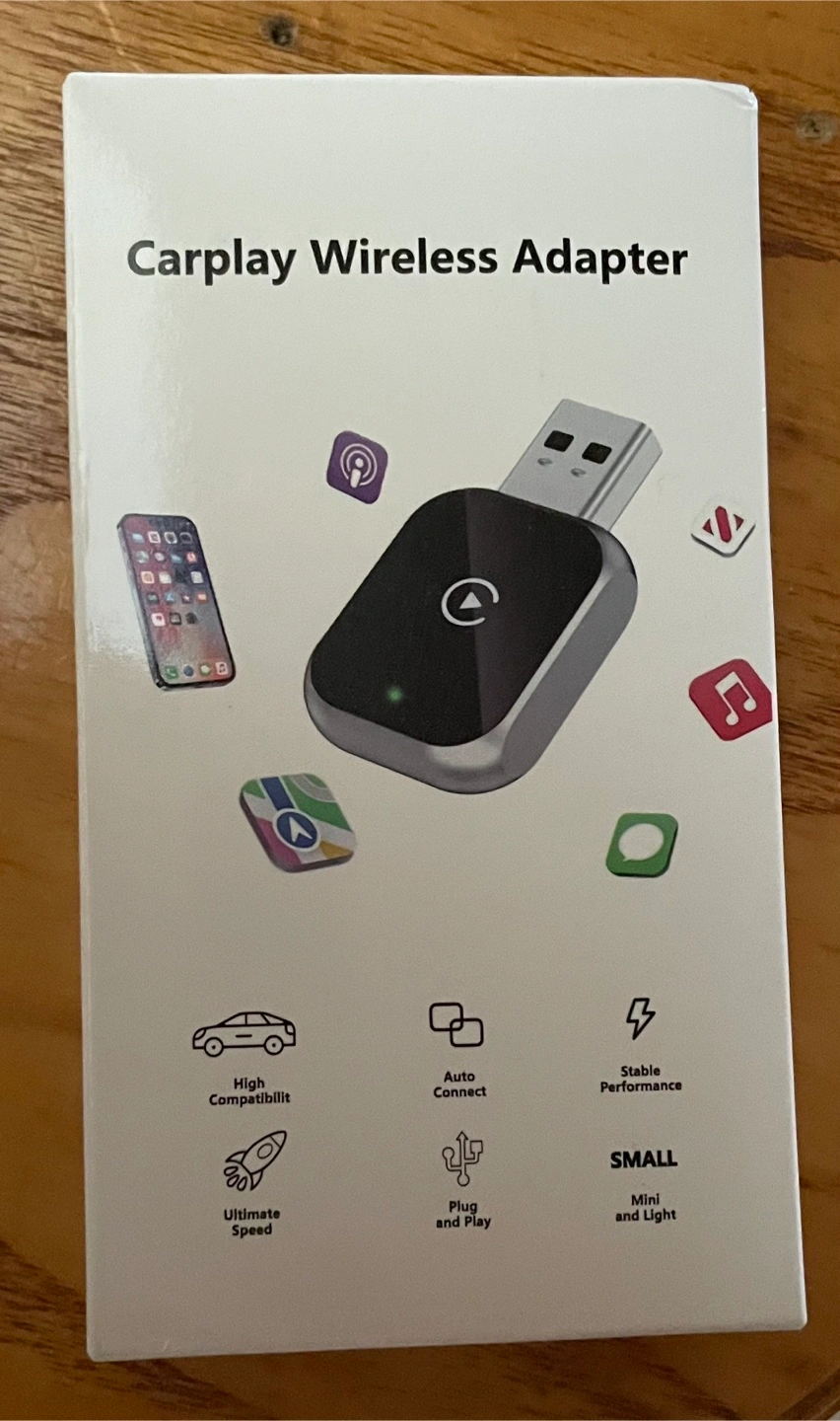 This is a Carplay Wireless Adapter. It's small and light for easy use. Features auto connect and plug and play functionality for ultimate speed. Stable performance makes it a great addition for your car!