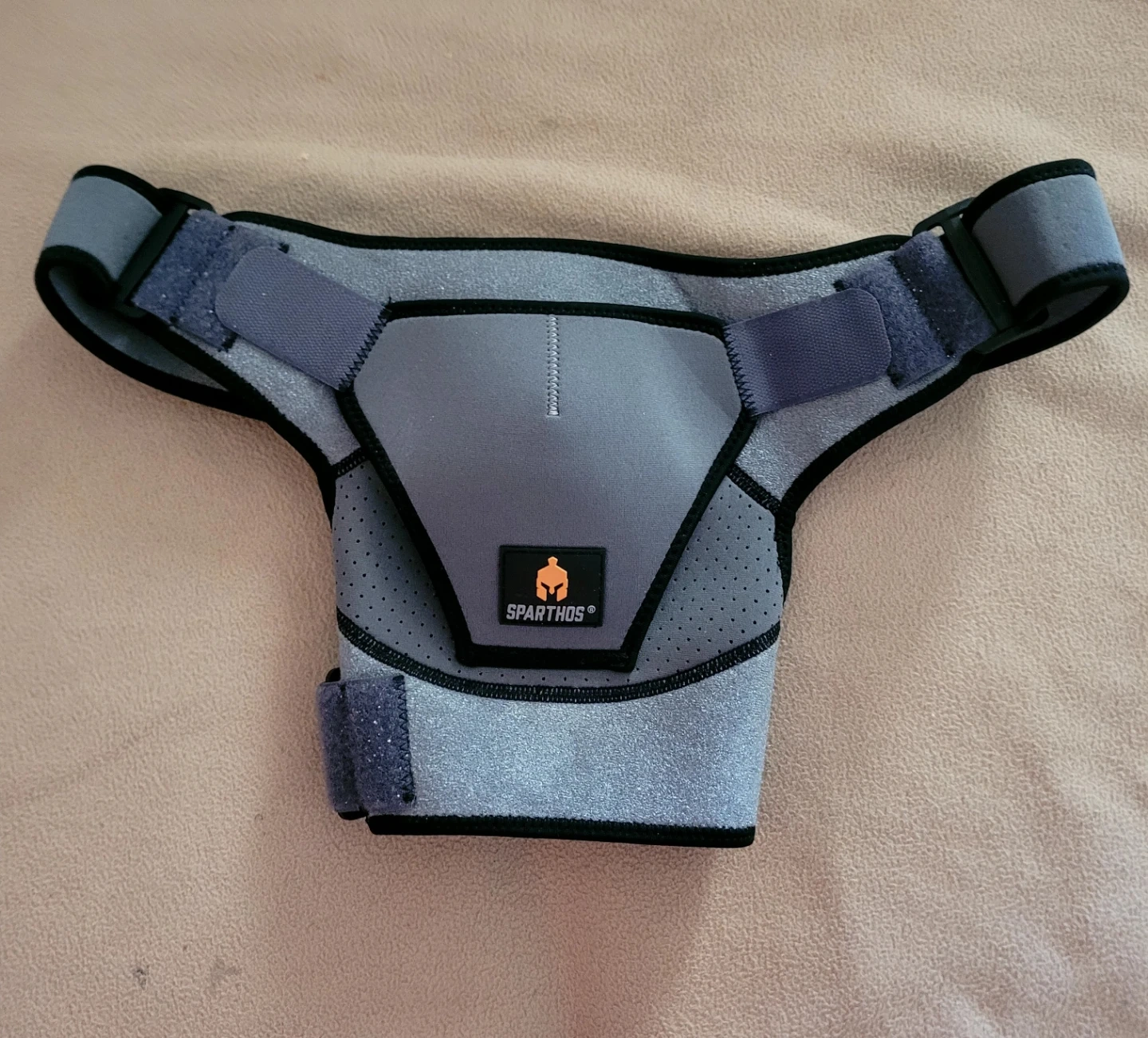 This SPARTHOS shoulder support brace is designed for comfort and stability. It features adjustable straps for a custom fit. Made from breathable neoprene material.