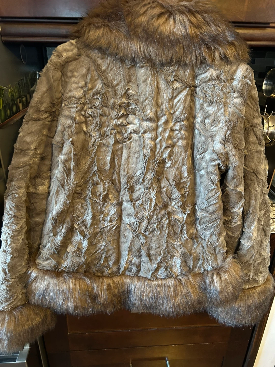 A stylish brown faux fur coat from LAYAVI Fashion. It features a soft quilted satin lining and a cozy faux fur exterior. This coat is perfect for adding a touch of luxury to your winter wardrobe!