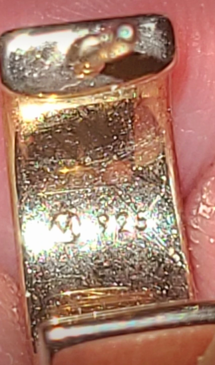 Classic gold hoop earrings. They're shiny and have a timeless design. The marking "M 925" is visible on the post, indicating sterling silver with gold plating.