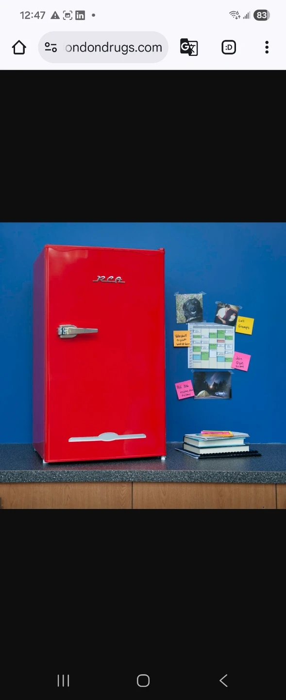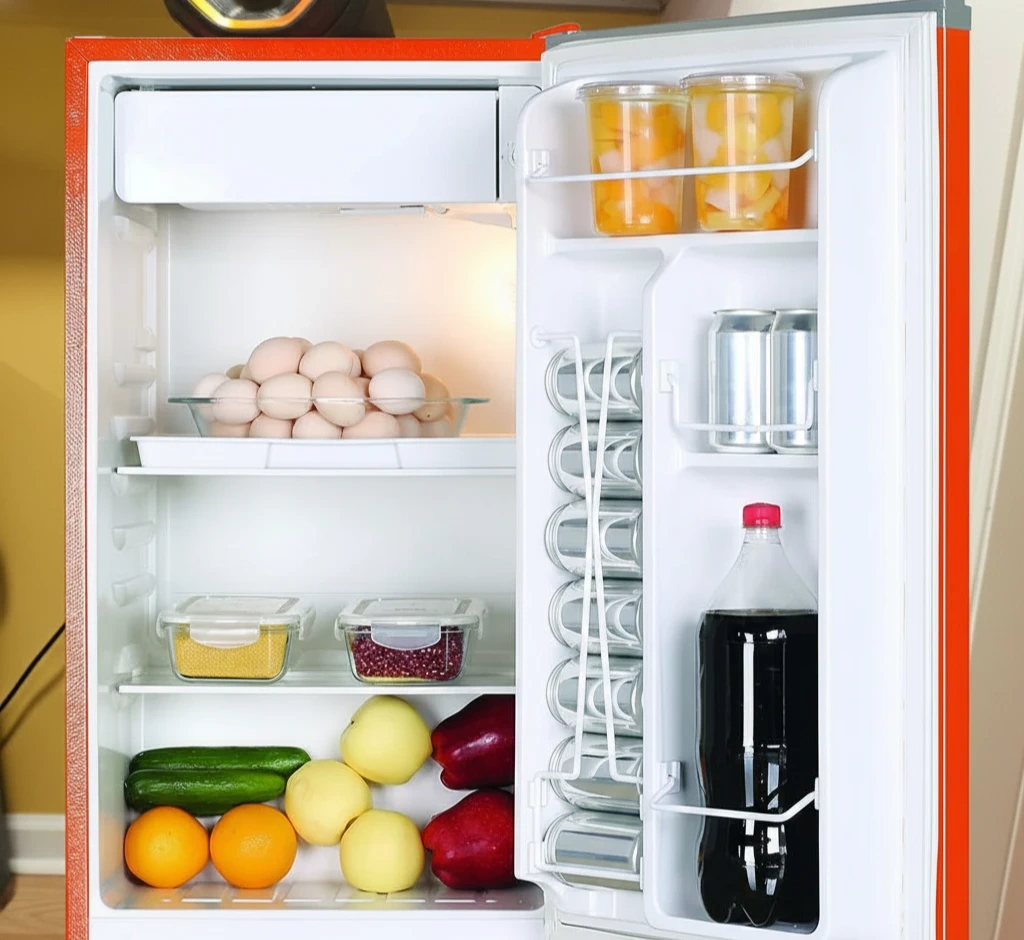 This retro-style mini fridge is a great addition to any room. It's perfect for keeping drinks and snacks cool. The compact size makes it easy to place anywhere. The vibrant red colour and classic design add a touch of vintage charm!
