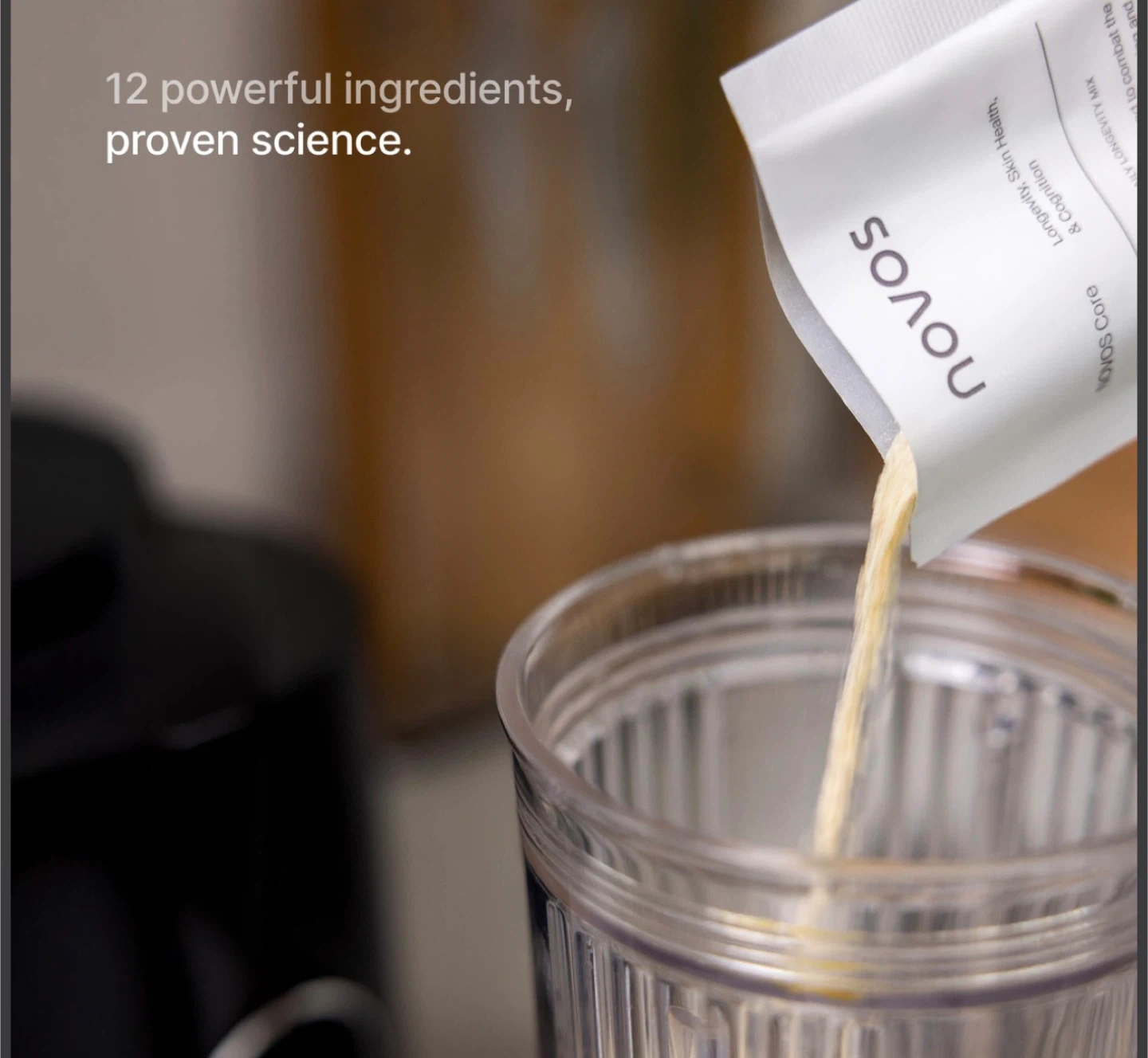Key Benefits: NOVOS Core targets the 12 root biological causes of aging simultaneously at the cellular level using an evidence-backed ingredient formulation based on the latest longevity science. Each sachet contains 0.24 oz of a proprietary, patent-pending blend of 12 life and health-enhancing ingredients extensively studied to slow the pace of aging and improve your skin health, energy, brain cognition, and mood.
