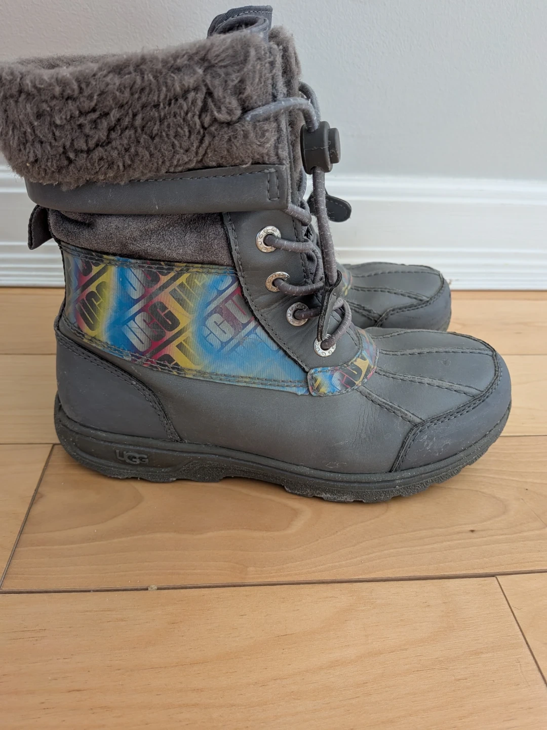 UGG K Butte li Chromatic snow boots for kids. Grey colour. Size US 3, EU 35, UK 2. These boots feature a warm, furry lining and a durable sole.
