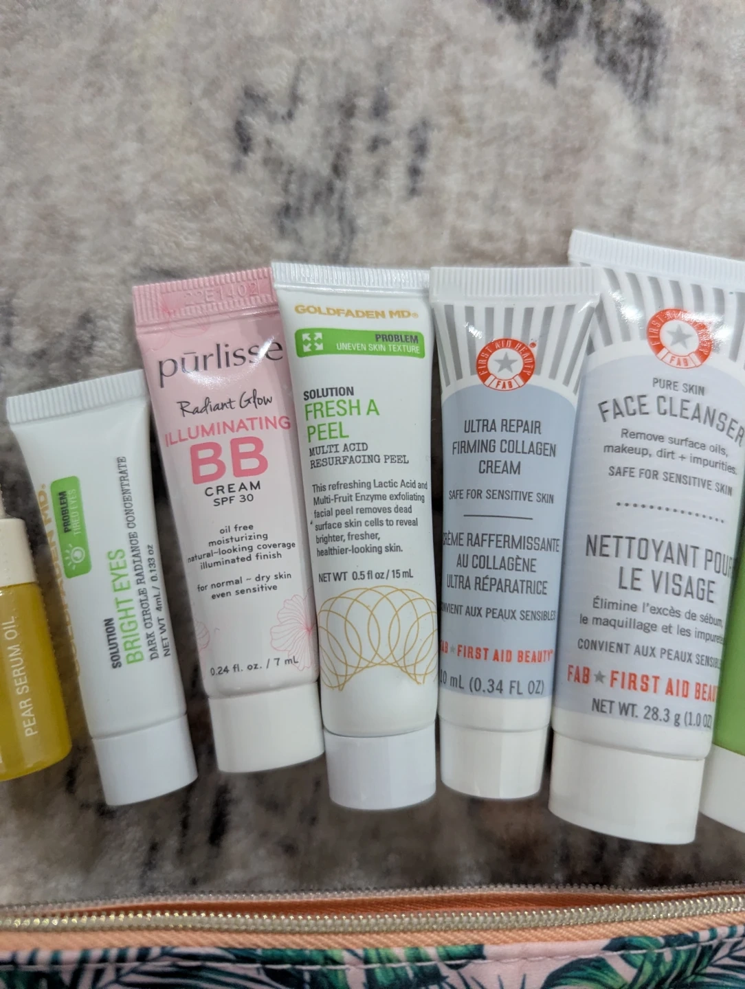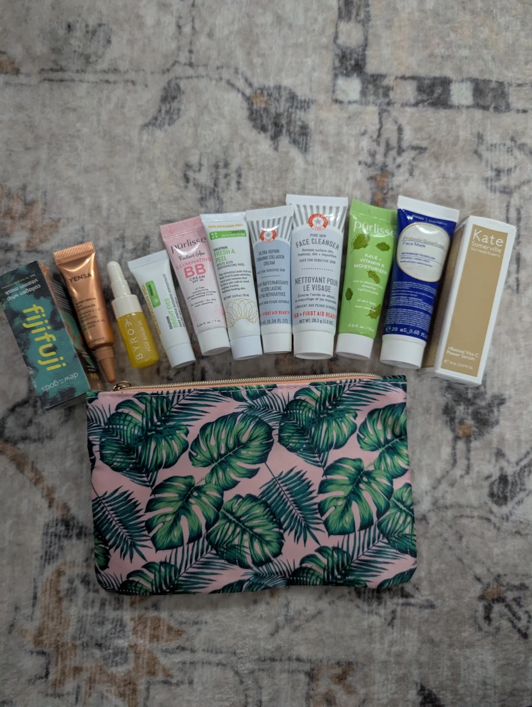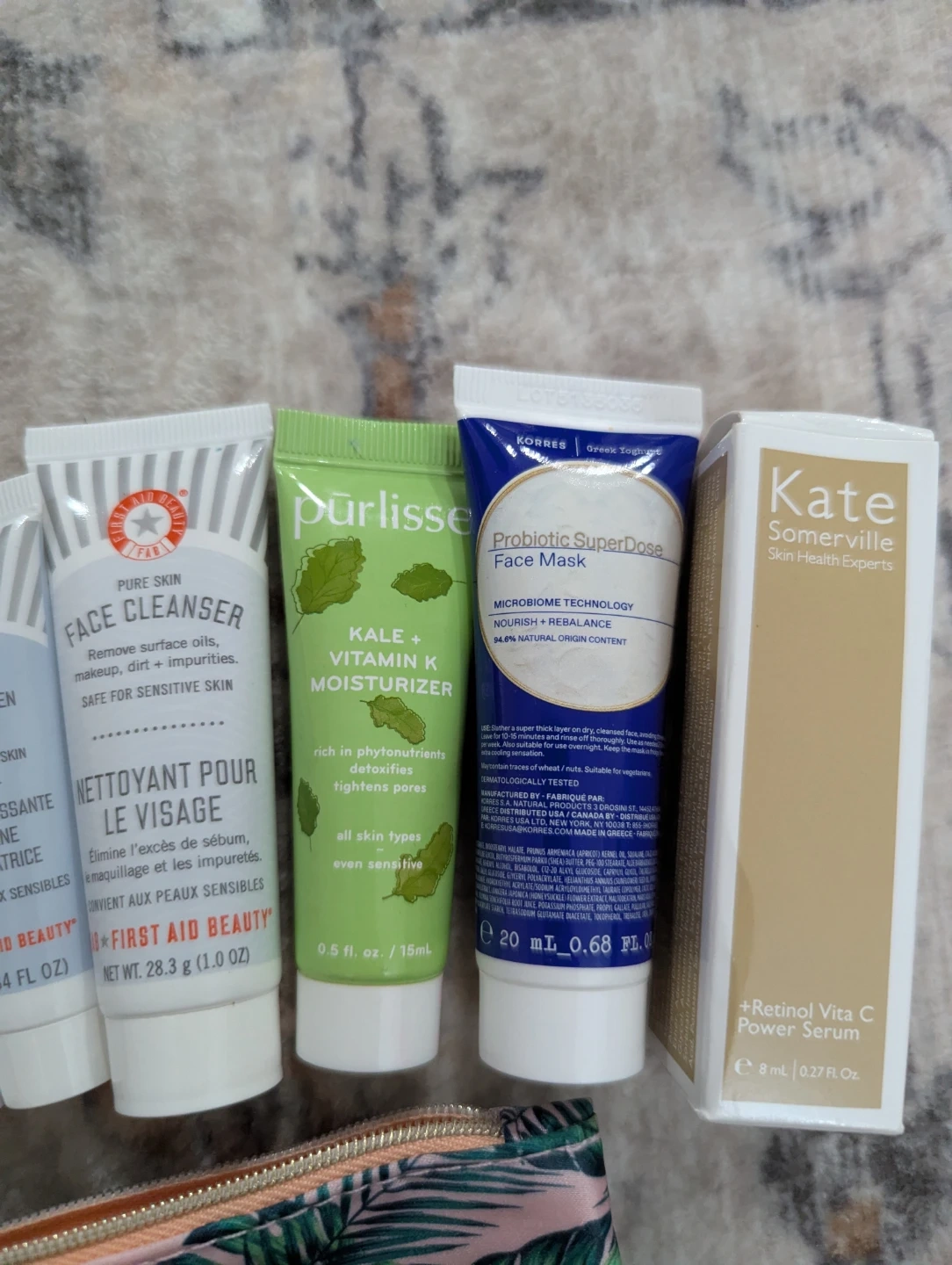 This set includes a variety of skincare items from popular brands. These items are great for trying out new products or for travel!