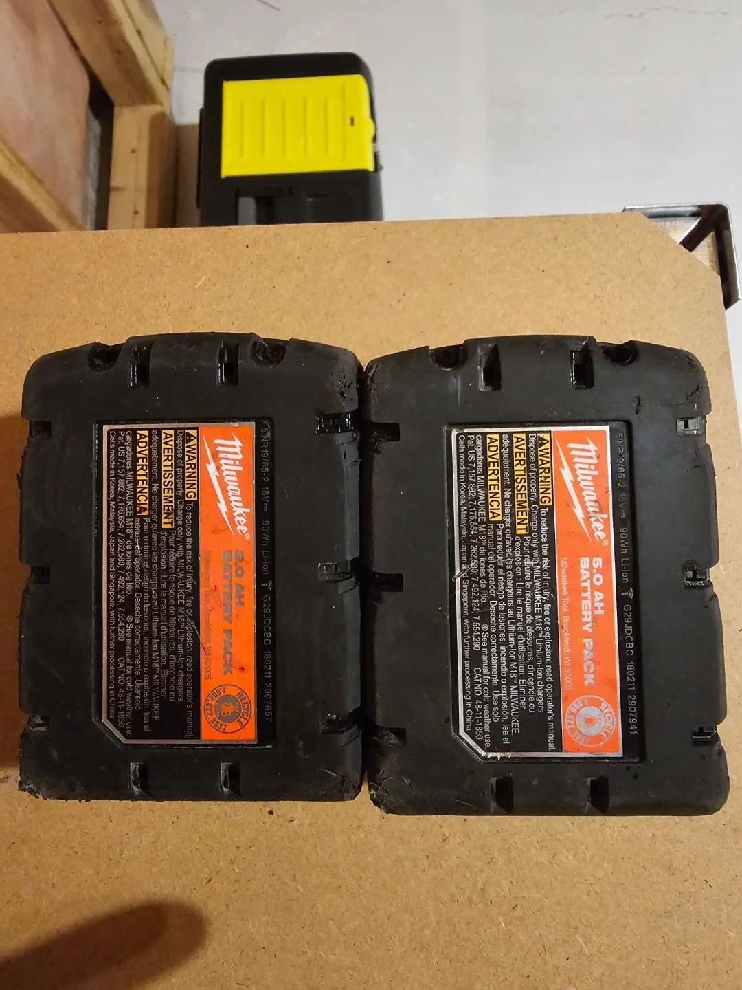 Selling two Milwaukee M18 REDLITHIUM XC5.0 battery packs. These are the 5.0 Ah model. They're in good working condition.