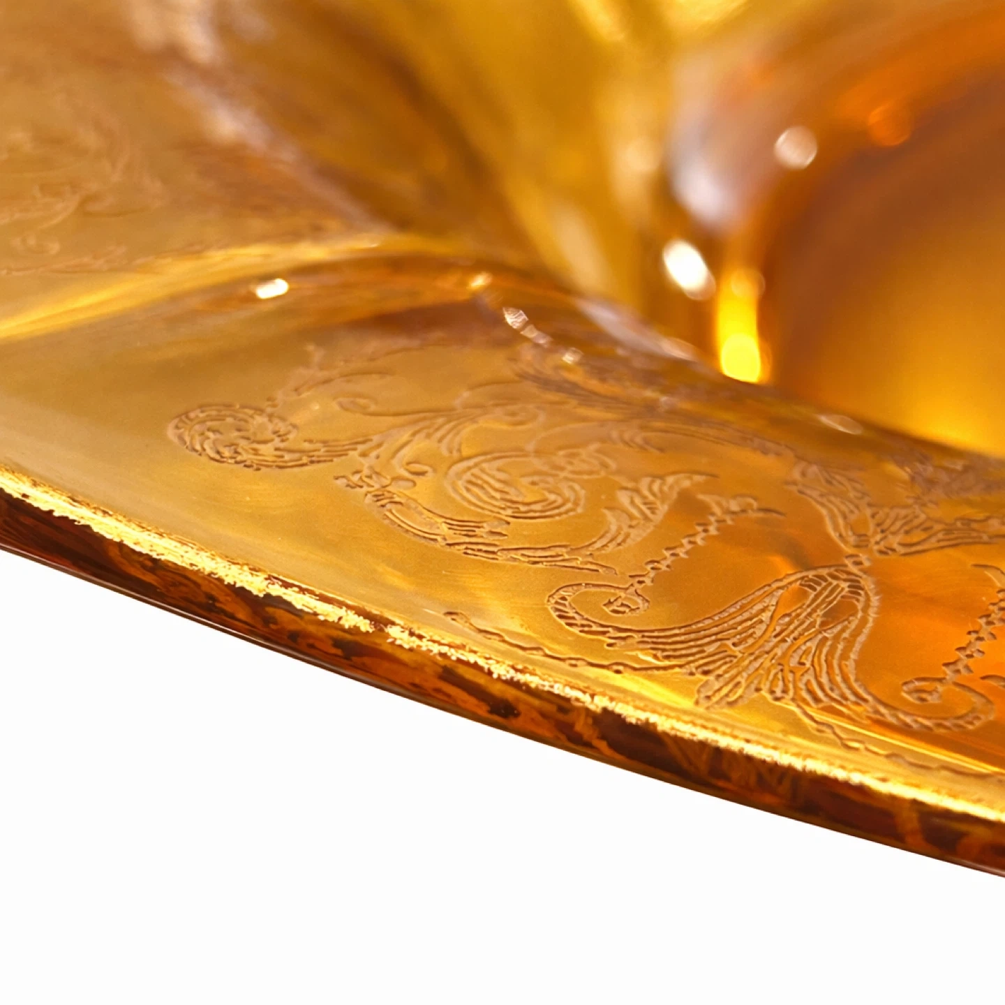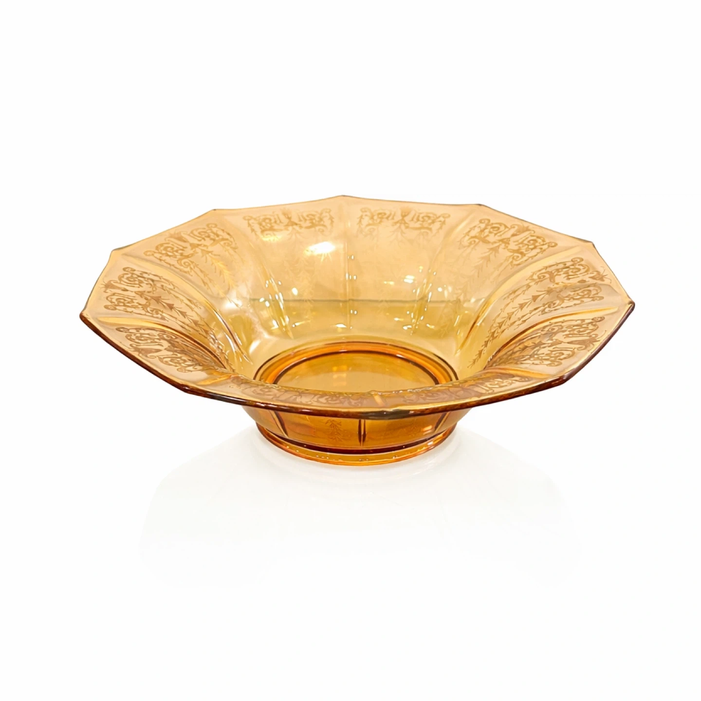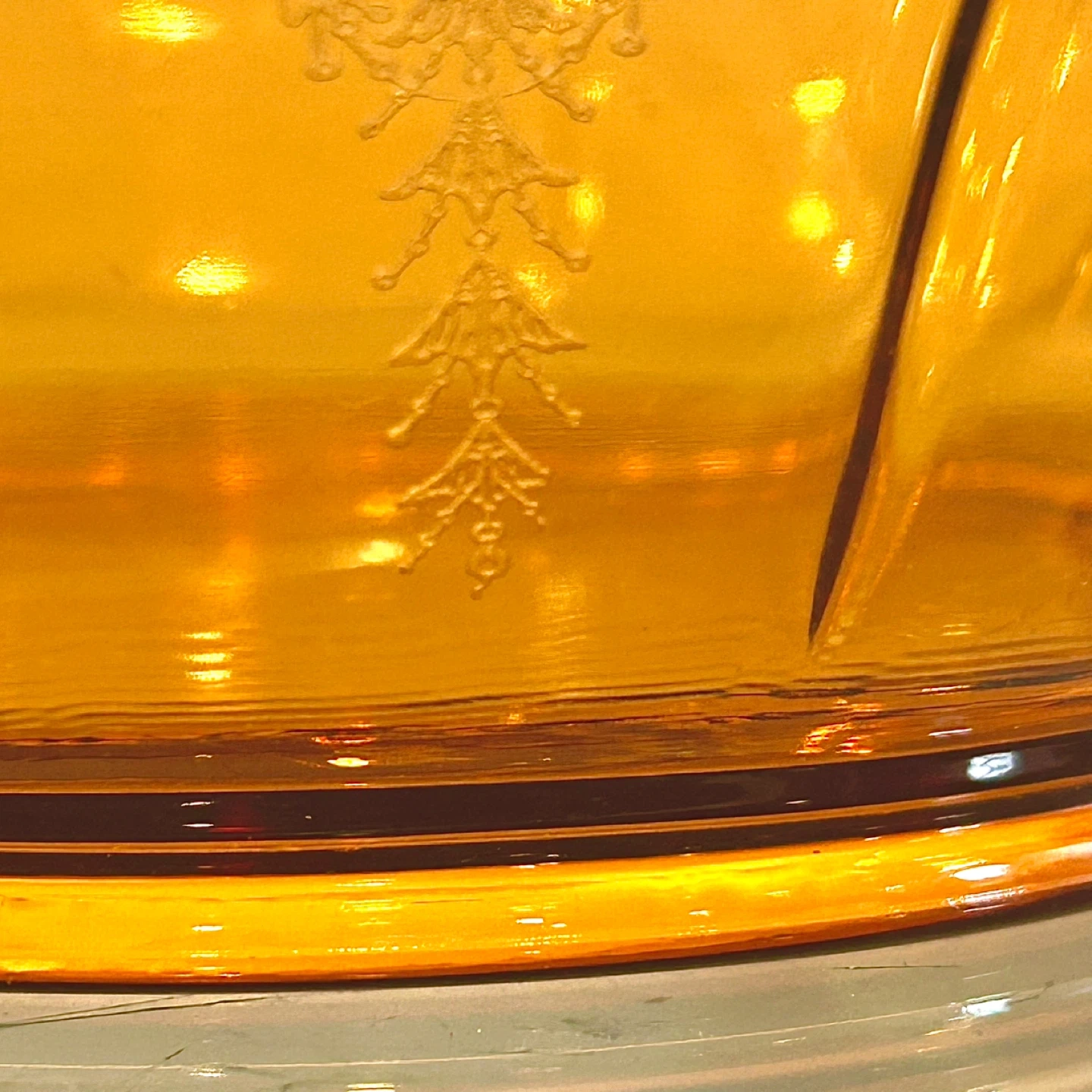 Amber etched Cambridge glass is increasingly sought after, particularly pieces with strong geometry, intact etching, and confirmed marks. This bowl works equally well as a table centerpiece, console display, or cabinet piece, and photographs exceptionally well under natural or gallery lighting.