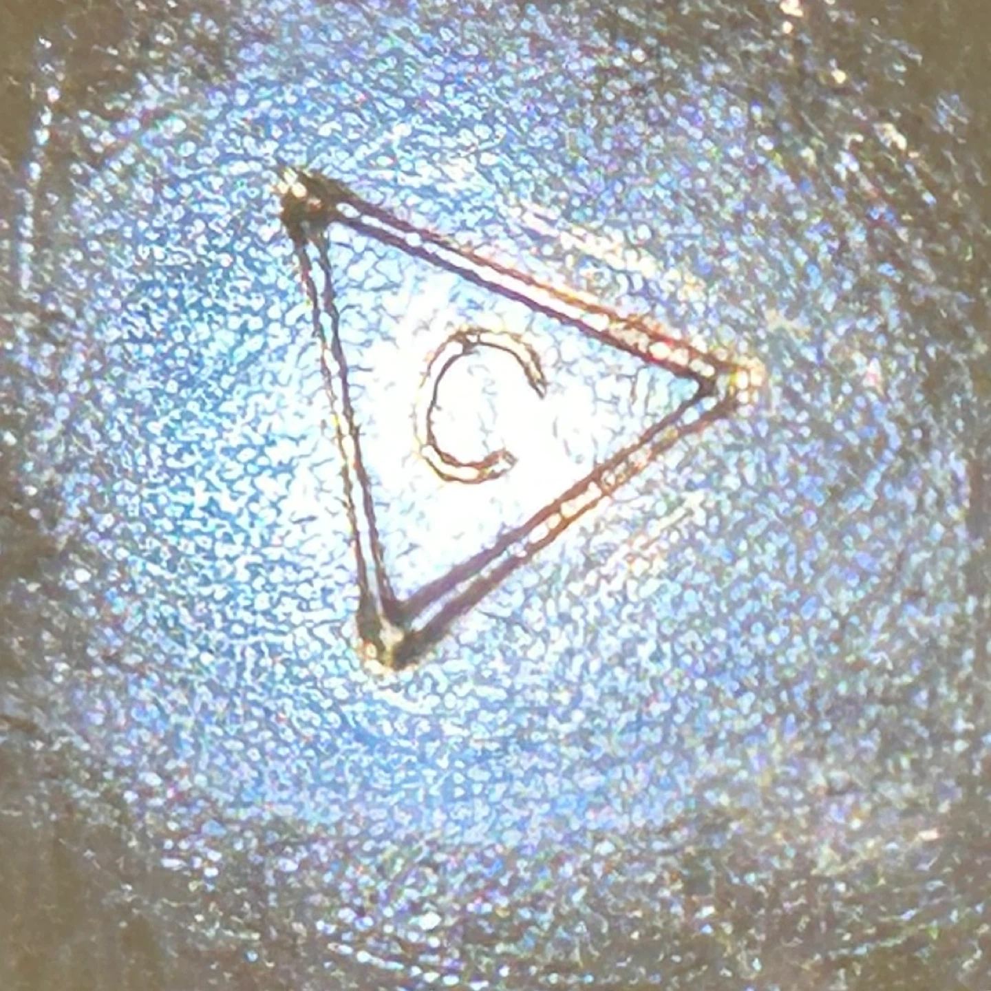 • The precise geometry of both the triangle and the centered “C” is consistent with known authentic examples