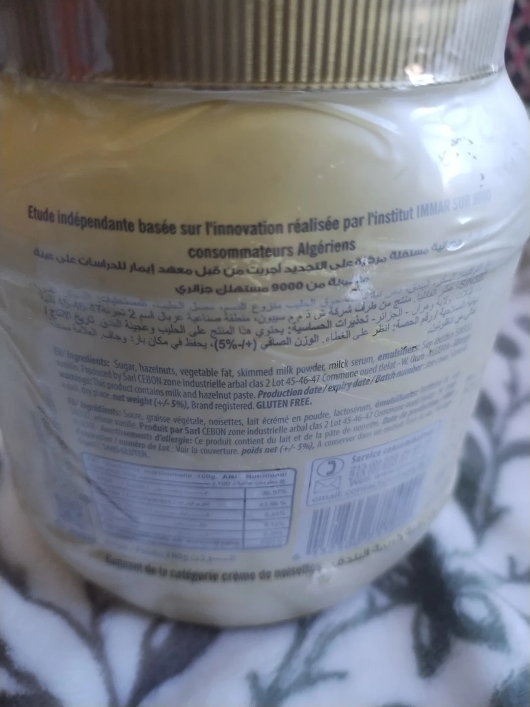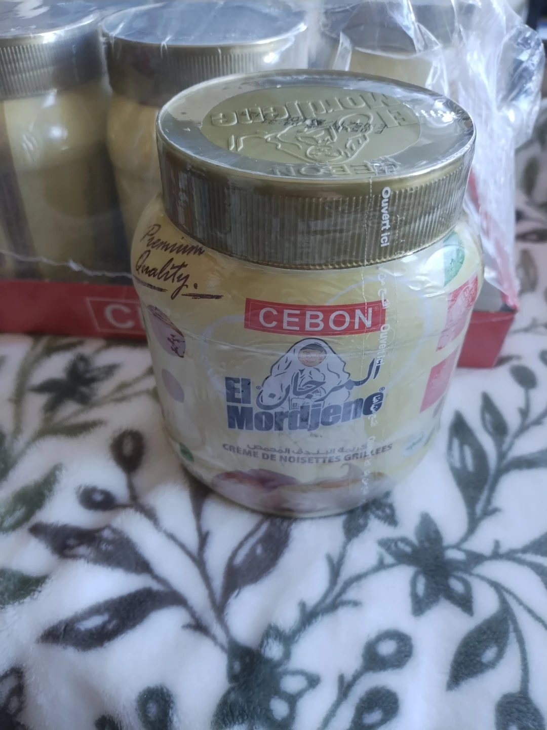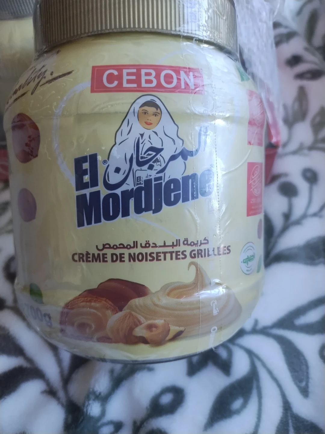 El Mordjene Creme de Noisettes Grillees (Roasted Hazelnut Cream) is a premium spread made with sugar, hazelnuts, vegetable fat, skimmed milk powder, and milk serum. Each jar weighs 700g. This Roasted Hazelnut Spread is so tasty. It competes with Nutella in the European countries.