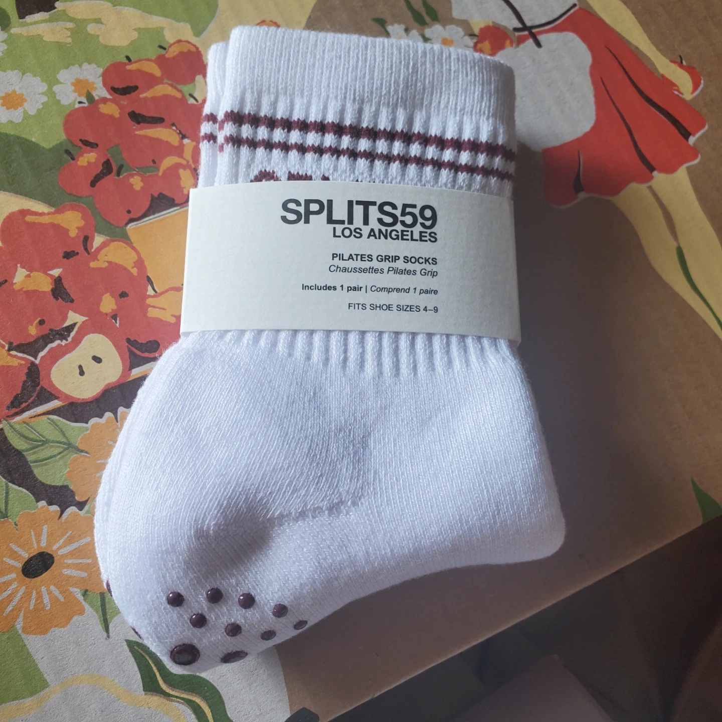 These are Splits59 Pilates grip socks in white. They include grippy dots on the sole for traction. Fits shoe sizes 4-9.Brand new from FabFitFun.