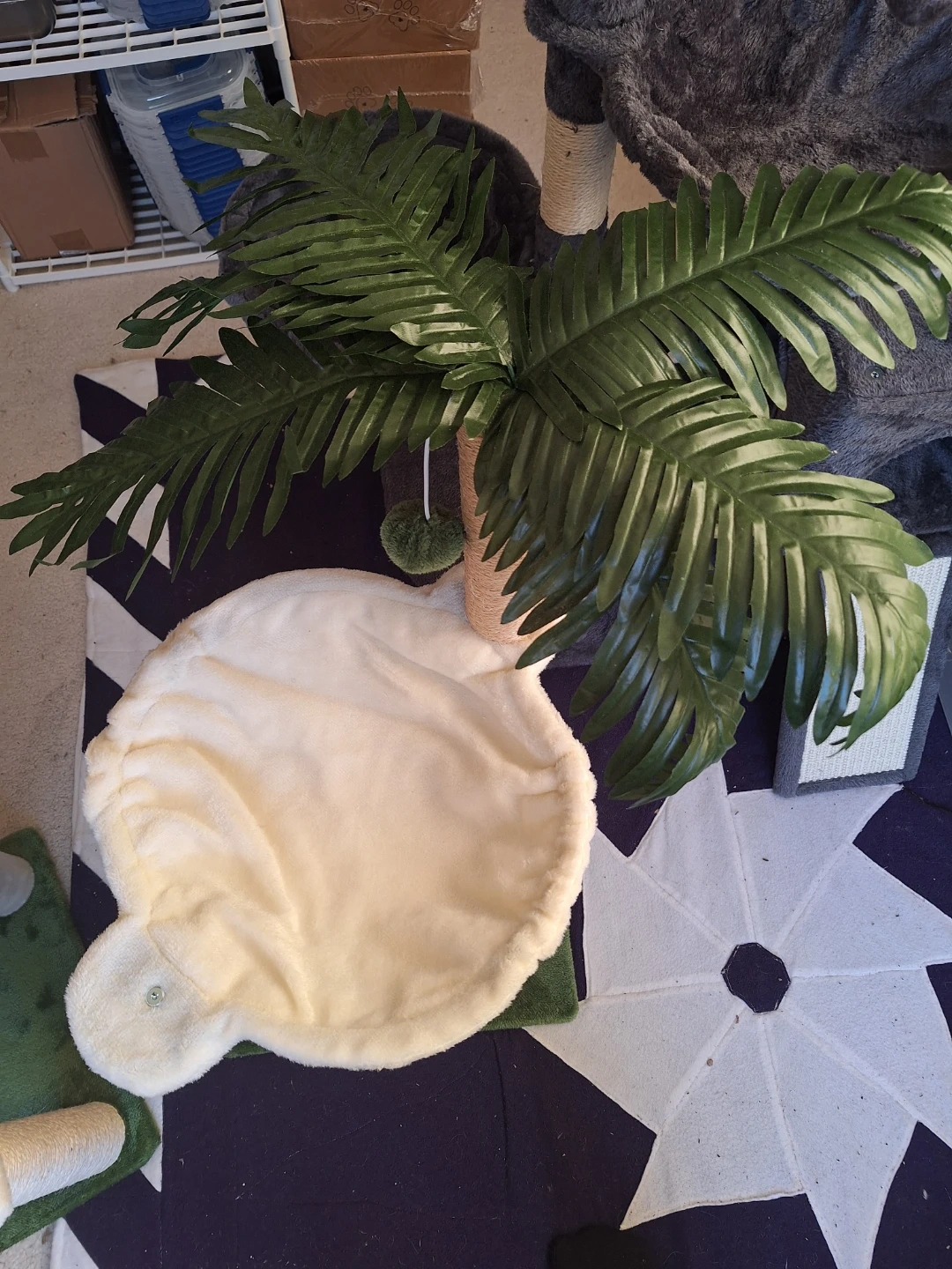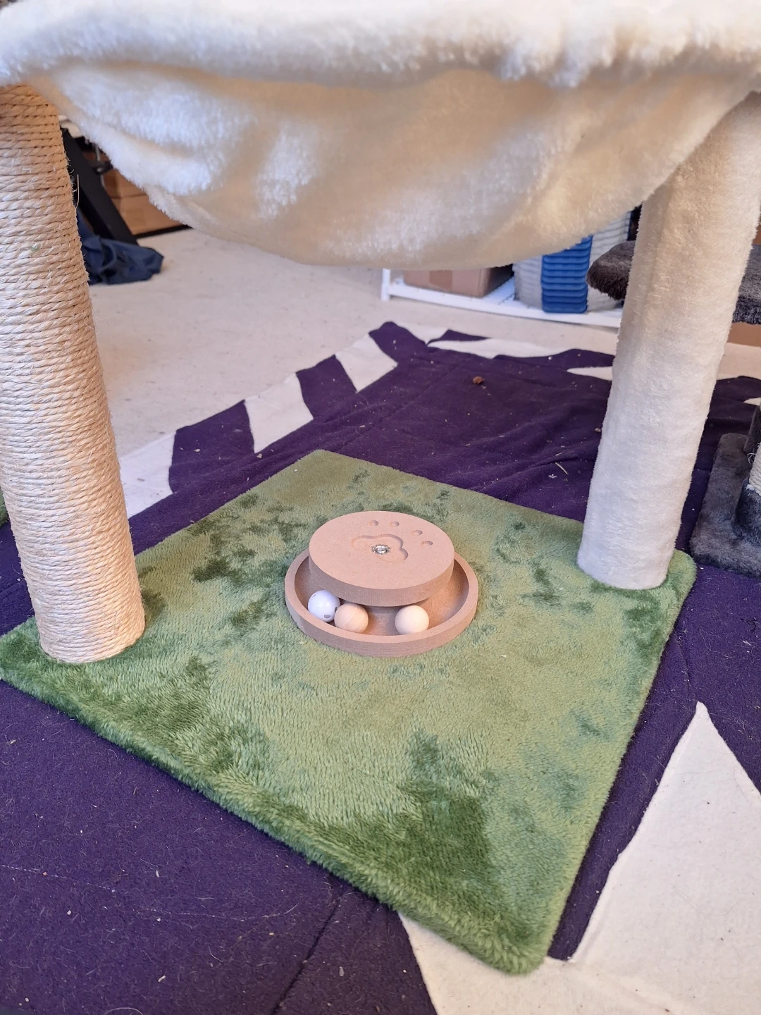 These cat trees features a large plush hammock and scratching posts. It comes with a wooden built-in toy that has three balls inside. Provides climbing, resting and play spots for your feline friends! Perfect for large cats!! ๐