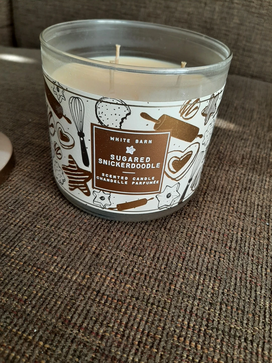 This is a White Barn BN three-wick scented candle in the Sugared Snickerdoodle fragrance. It's made with a blend of waxes for a clean and even burn. The lid is included. Great for creating a cozy atmosphere!