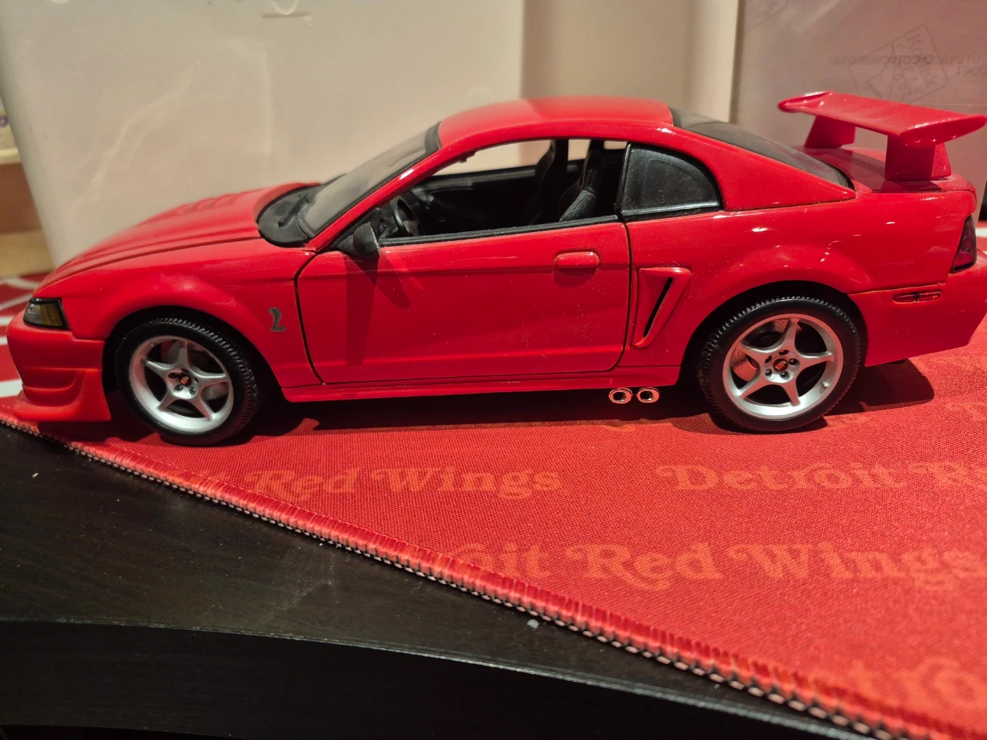 Collection of Ford Mustang diecast model cars, including a yellow 1994 convertible and a blue Shelby GT500. Also includes the "Mustang: Forty Years" book by Randy Leffingwell. Great for any car enthusiast!