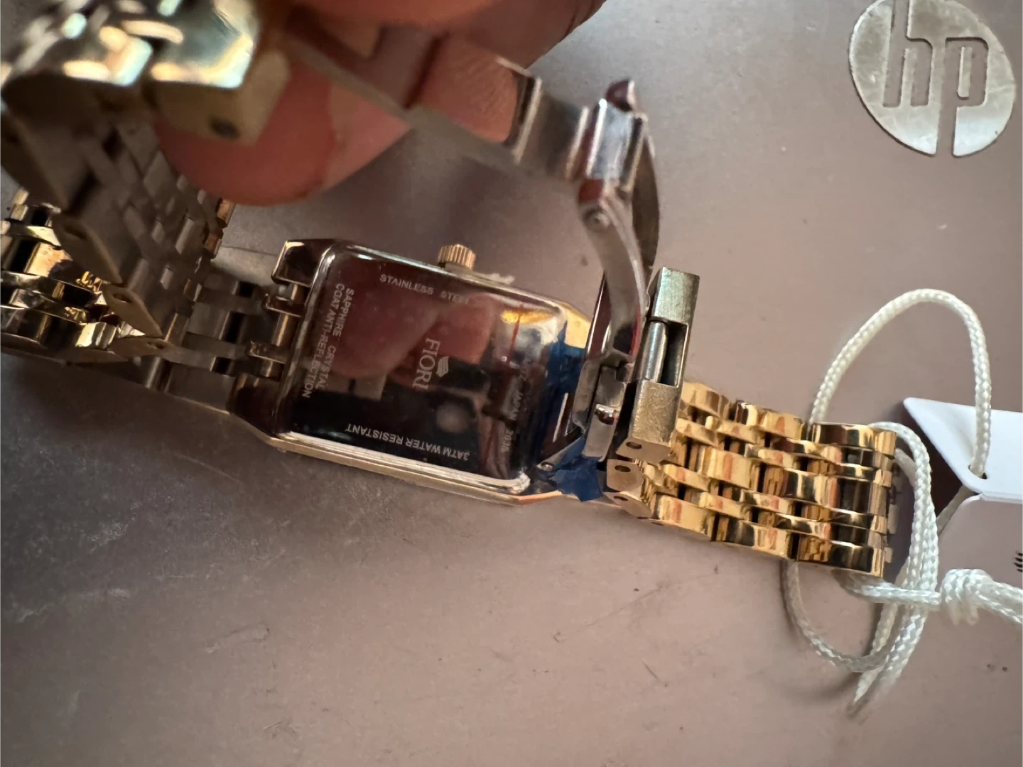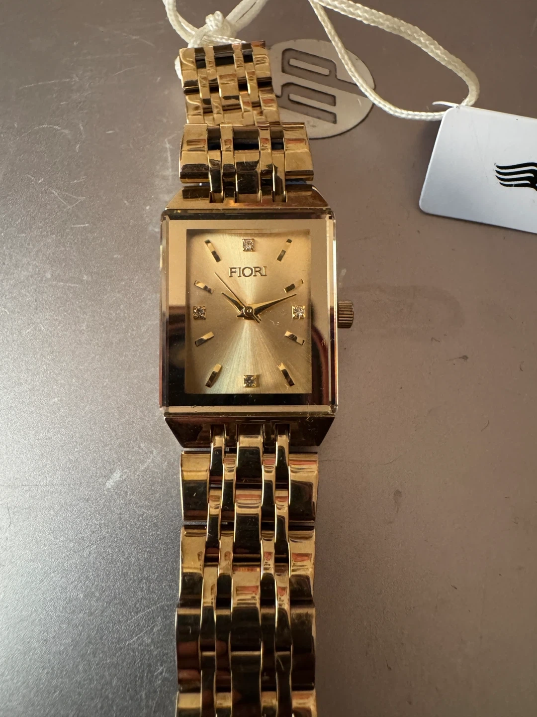 This is a Brand New classic Fiori women's watch with a gold-tone finish. It features a rectangular face and a durable stainless steel band. The watch is water-resistant up to 3 ATM. Message me for More Details!