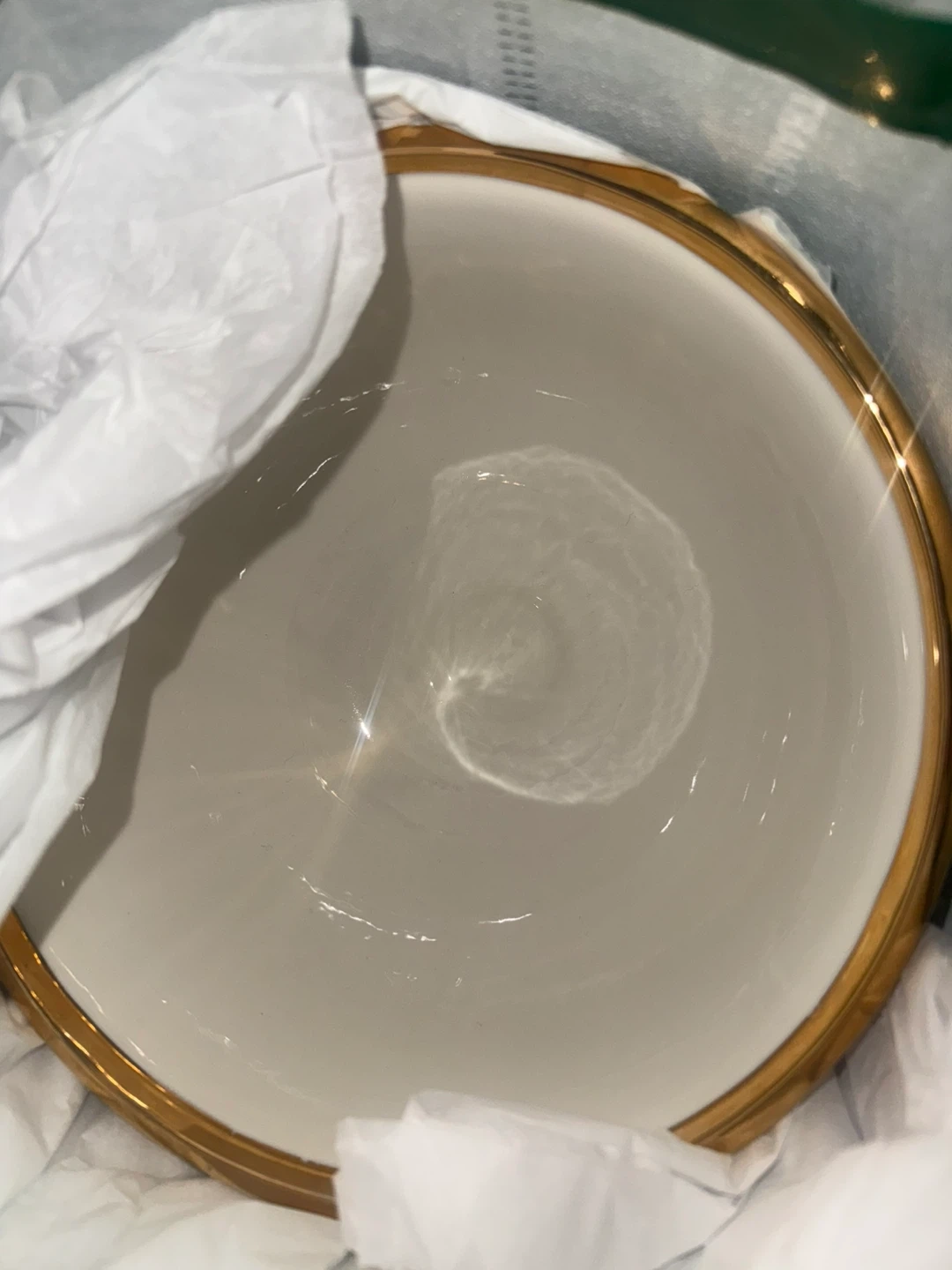 -Material: High-fired porcelain with both shiny and matte real gold accents