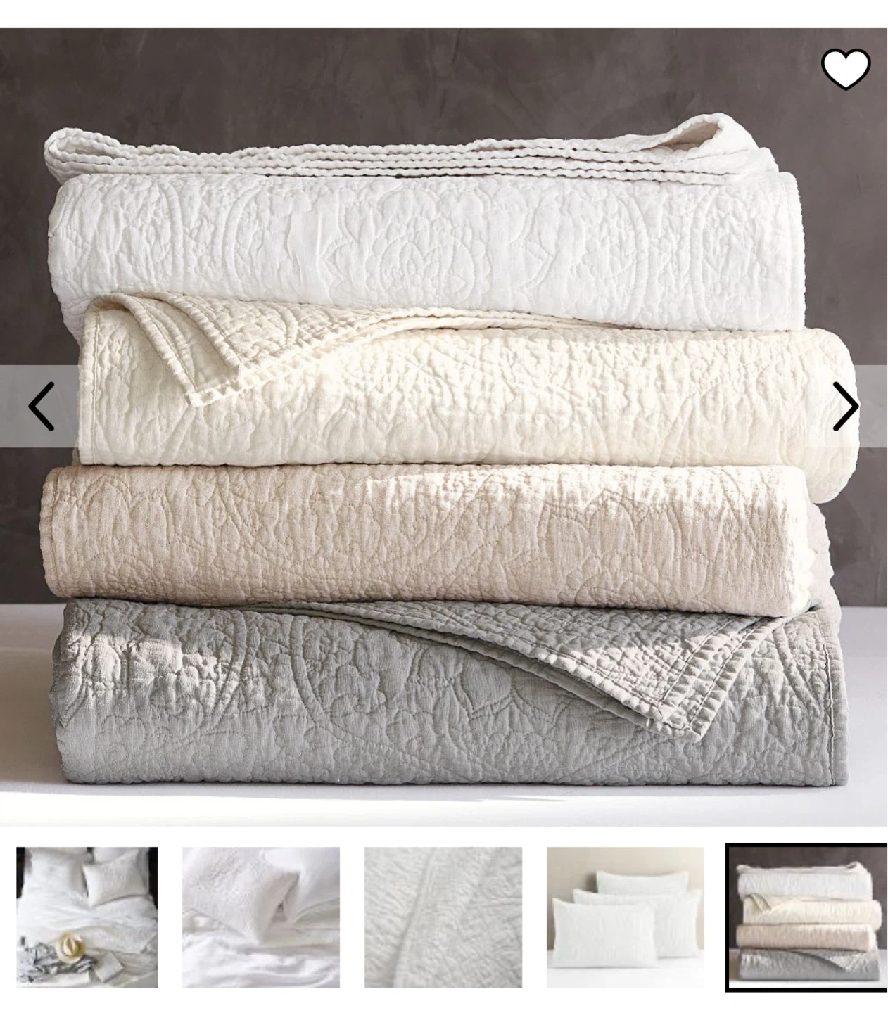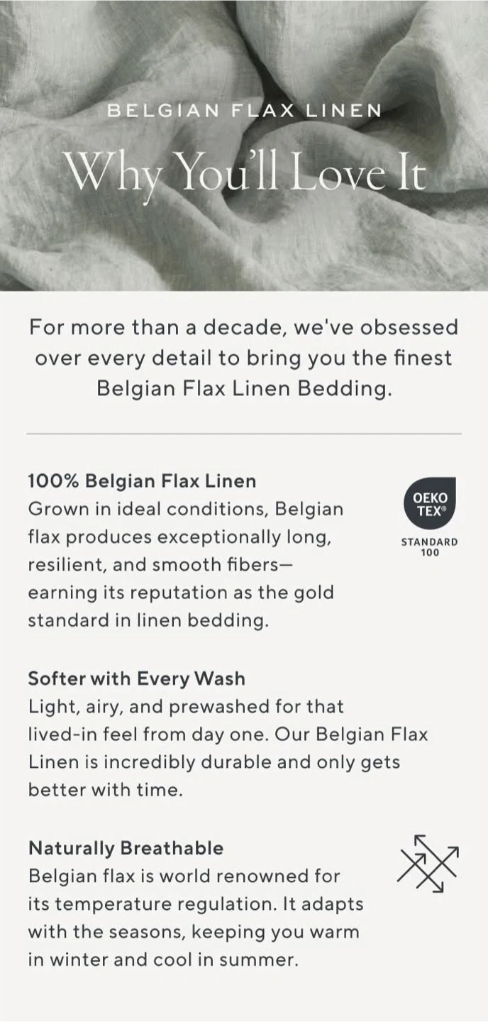 This Belgian Flax Linen quilt features a beautiful floral stitch pattern. It's made from 100% Belgian flax linen, known for being breathable and getting softer with every wash. This quilt is perfect for adding a touch of elegance and comfort to your bedroom.
