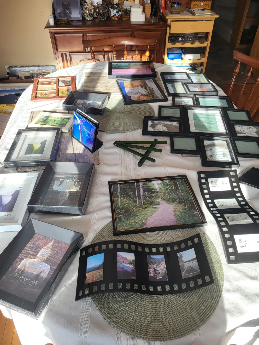Collection of assorted picture frames. Selling as a lot of 20 frames total. Includes various sizes and styles, some are still in original packaging. Perfect for displaying your favourite photos and art!