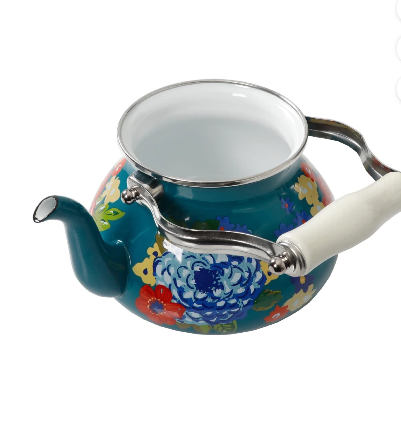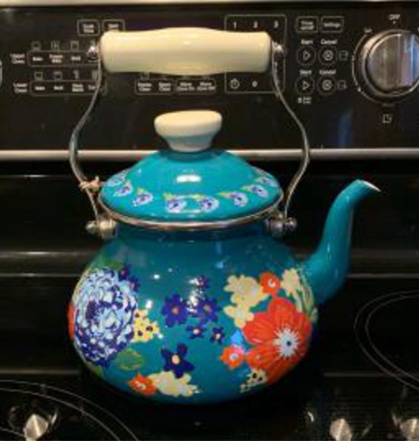 The Pioneer Woman Enamel Kettle Teal Floral 2 Quart