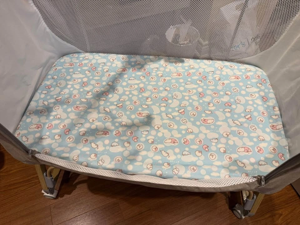 Moving sale. No smoking or pets in the home. Waterproof sheet included. Pickup at Binnery Dr, Brampton. Two extra fitted sheets and hanging toy with stand available for an additional $20.