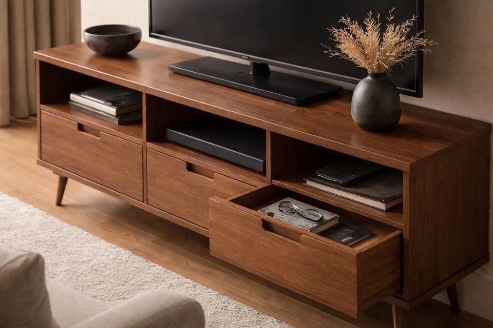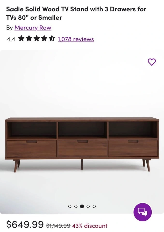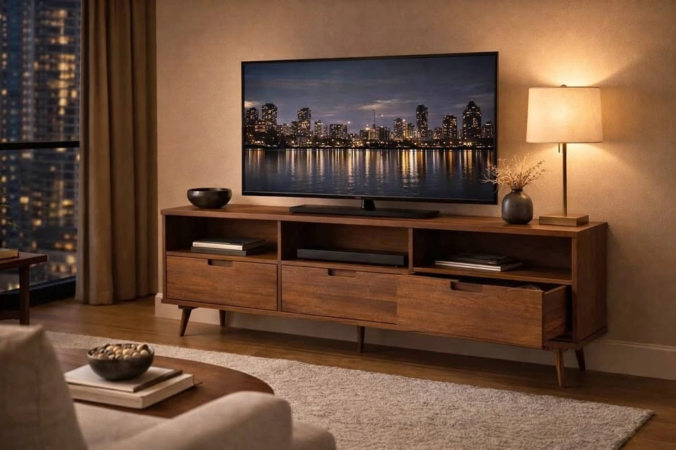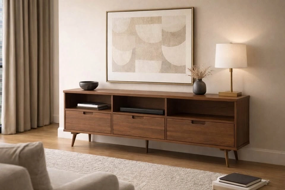 Mid-Century Solid Wood Media Stand - 70" Wide - BRAND NEW