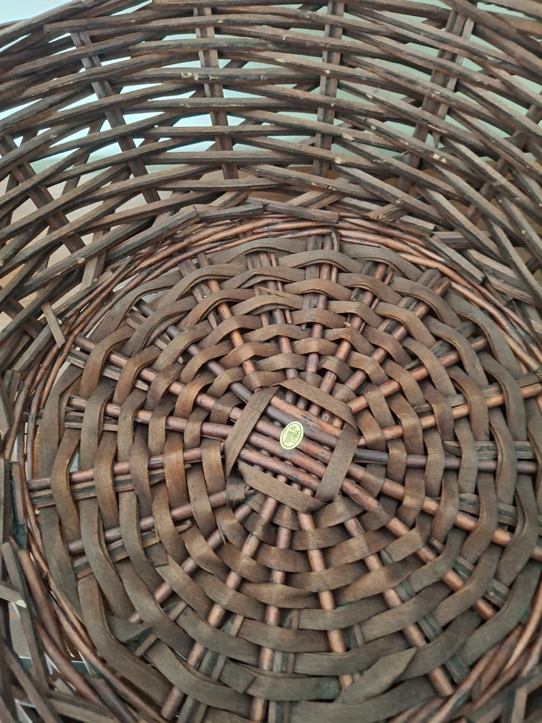 Dark brown woven basket with handles. Some wear/character markings (by design). 15” from handle to handle, x 12.75”. 5” deep. Great for assembling a gift basket.