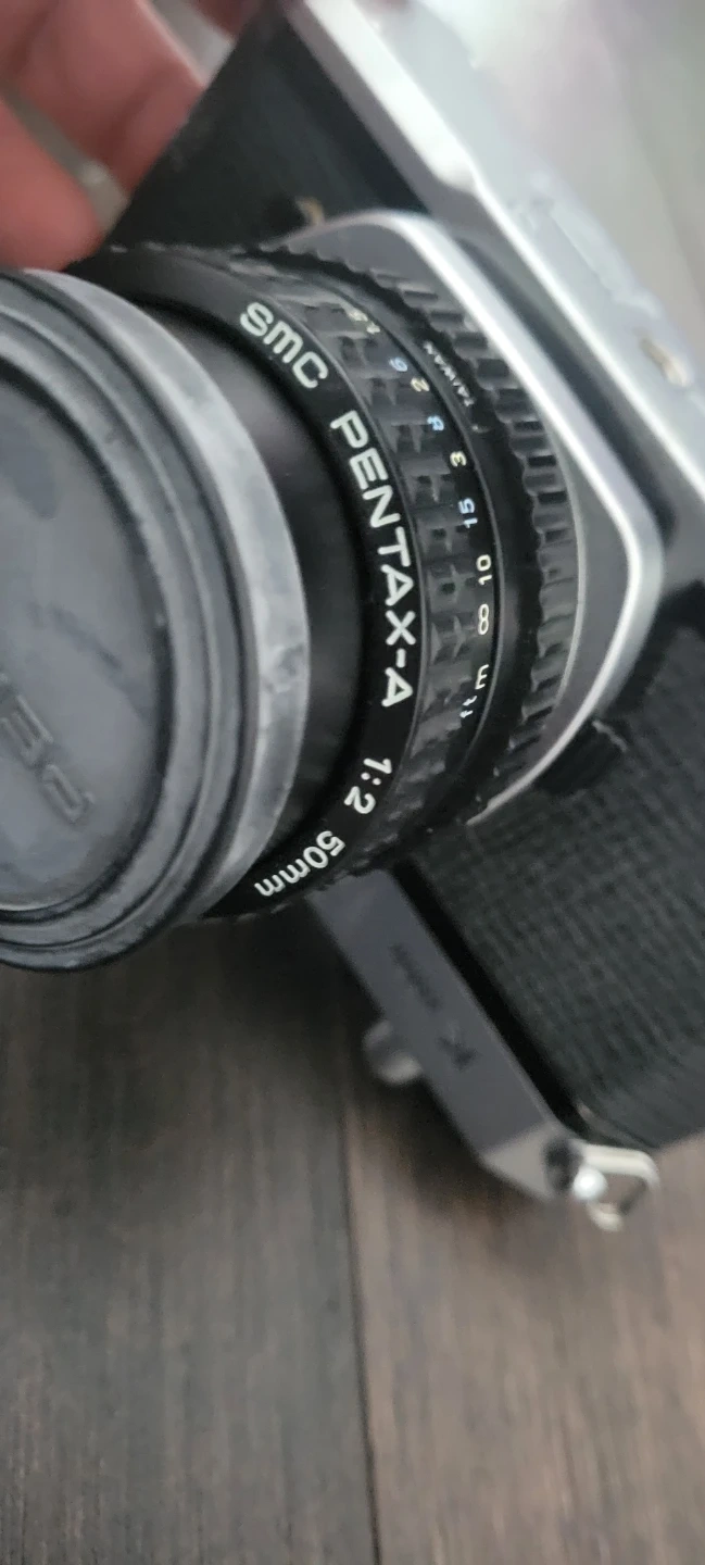 This is a Pentax K1000 35mm film camera. It comes with an SMC Pentax-A 50mm f/1.2 lens attached. This camera is great for learning film photography. THIS CAMERA HAS NOT BEEN SERVICED.