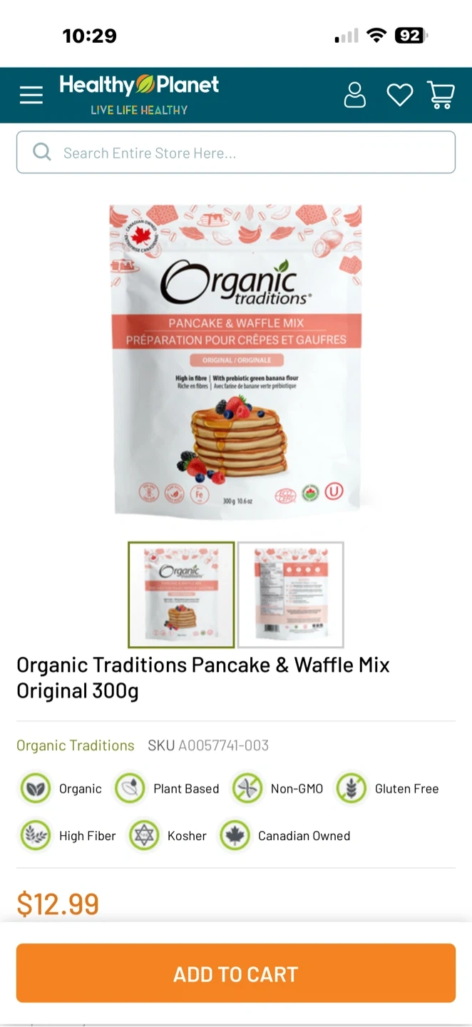 This Original Pancake & Waffle Mix from Organic Traditions is high in fibre with prebiotic green banana flour. It contains tree nuts and sesame. Store in a cool, dry place. Best by January 2027.