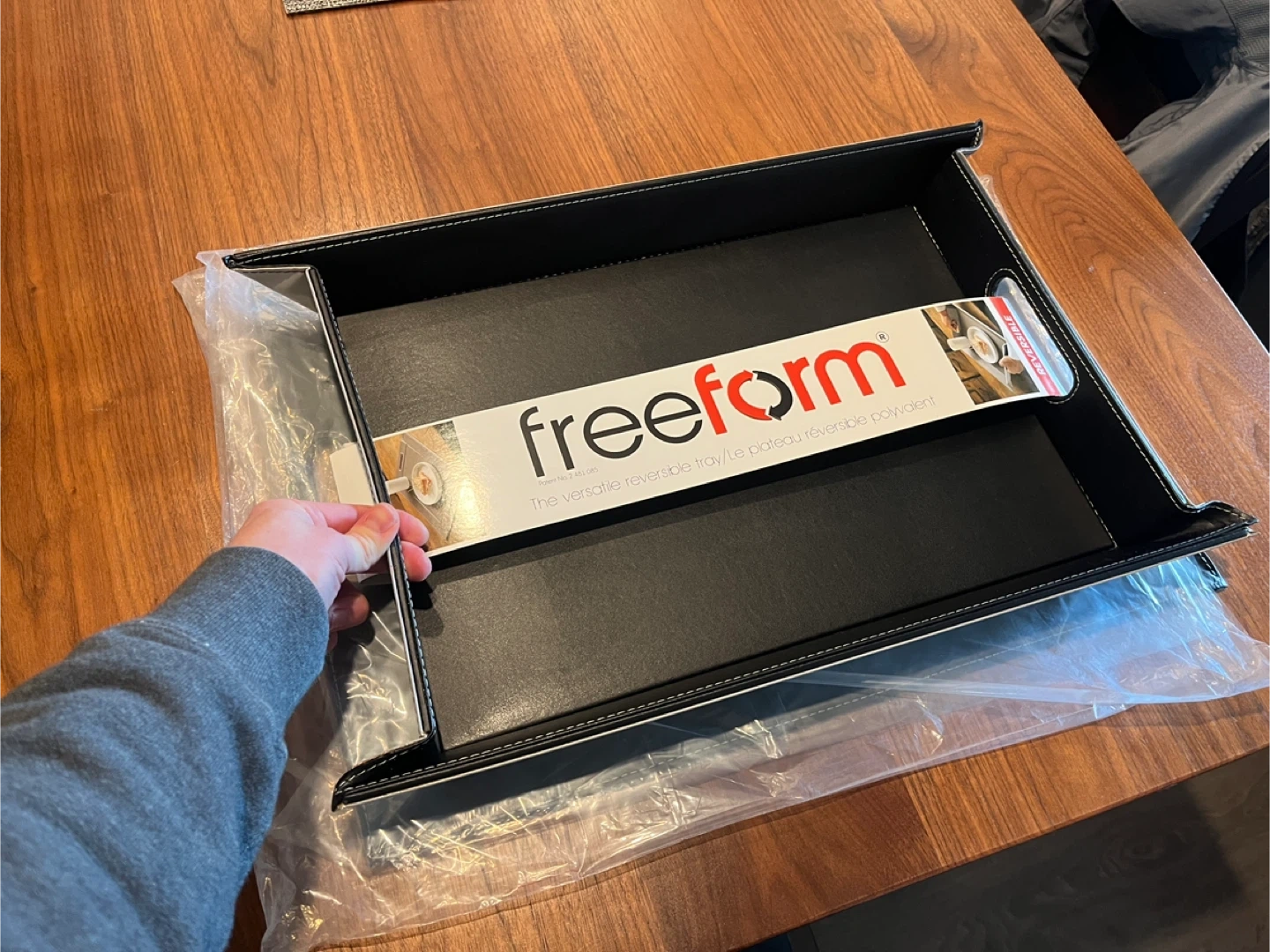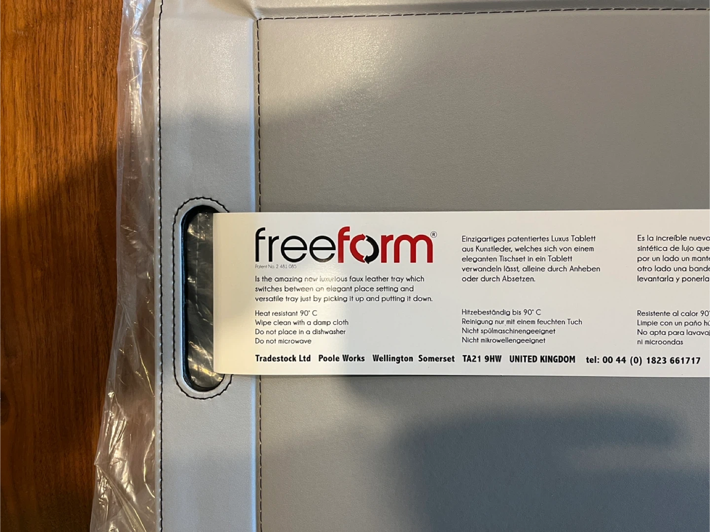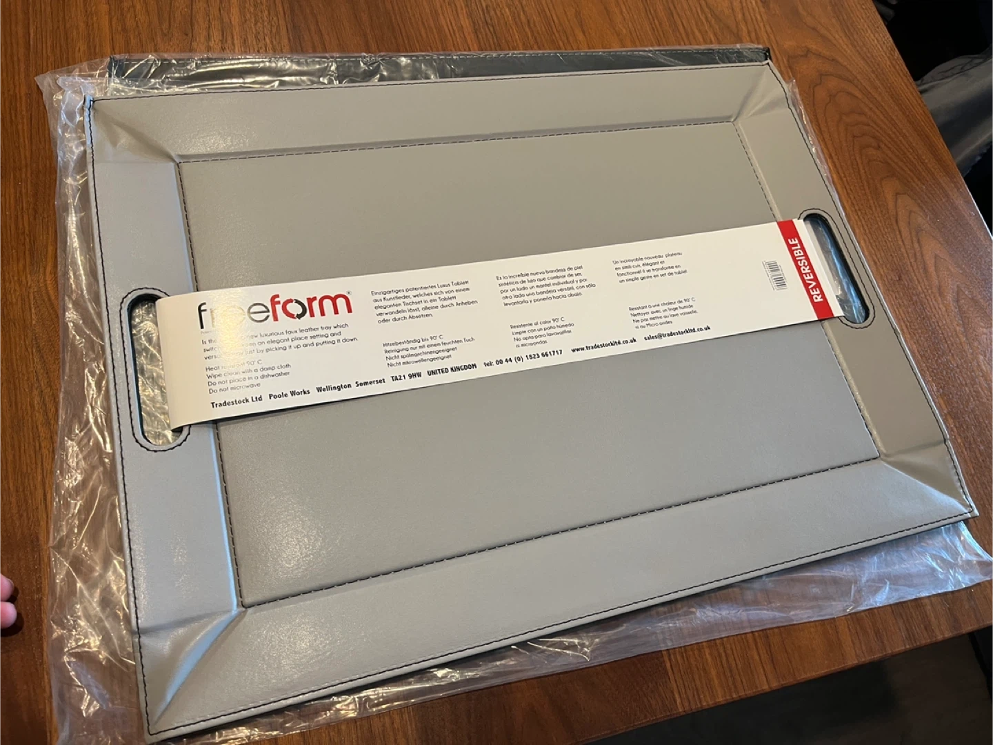 This is the versatile reversible tray, which switches between an elegant place setting and a functional tray just by picking it up and putting it down. It's heat resistant to 90°C. Wipe clean with a damp cloth. It can be useful for serving drinks or snacks.