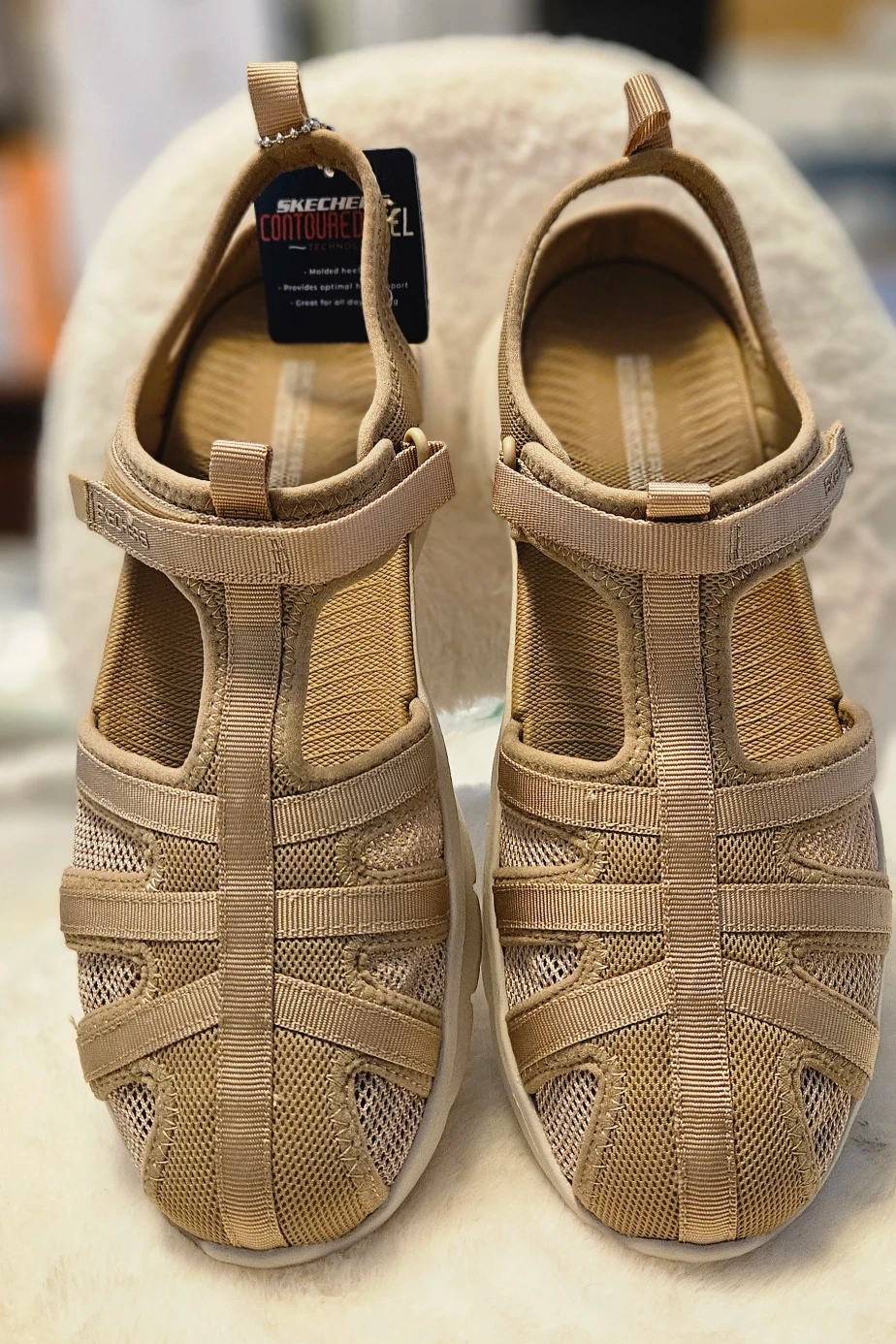 Explore the outdoors in effortless comfort with On-The-Go Flex Sandal - Jill. This t-strap sandal features a quick dry mesh/Lycra upper that dries 30% faster. The closed toe upper features webbing detail for breathability. The contoured Goga Mat™ footbed and Ultra GO® cushioning will keep you comfortable all day long. Machine washable.