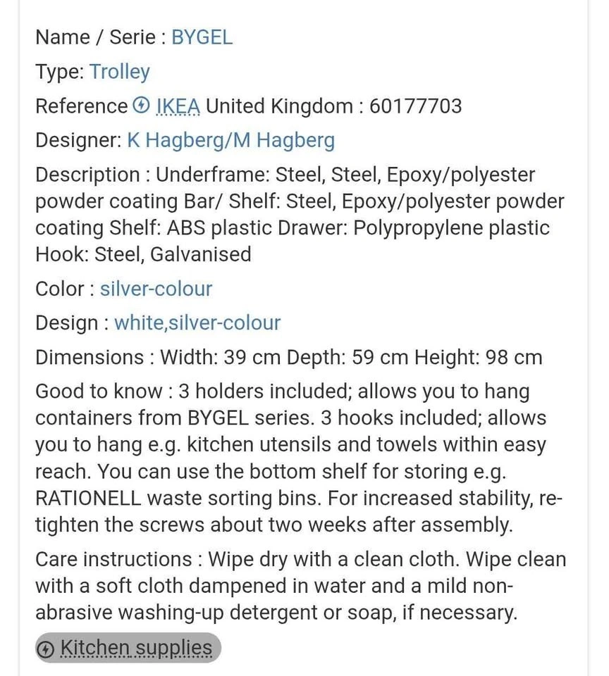 Buy & SellIKEA Utility Cart BygelIKEA Utility Cart Bygel$203 shelves, 1 drawer, 2 wheels. Detailed description and dimensions in photos. Pickup in Kitchener in Forest Heights.WHERE TO MEETCheck LocationView MapSELLERAaronForest Heights361 review1 chats·0 favorites·8 viewsSEND CHAT TO SELLERHi Aaron! I’m interested in your listing.Hi Aaron! I’m interested in your listing.Get the Karrot app to chatSign In to chat