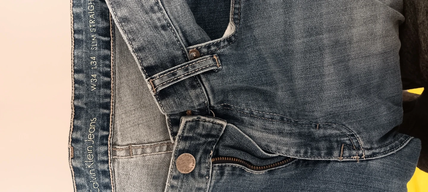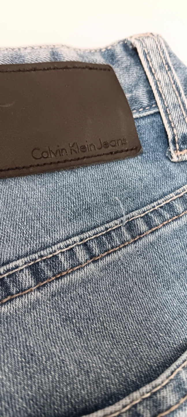 Classic blue denim jeans from Calvin Klein. Features a slim straight fit with a comfortable feel. A staple for any casual wardrobe. Size is W34 L34.