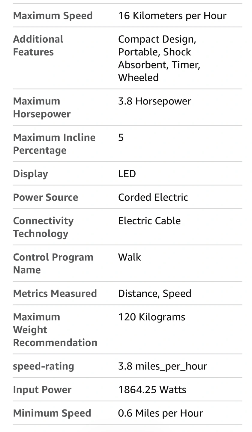 Under Desk Treadmill, Walking Pad for Home and Office, 2.5 HP Portable Walking Jogging Running Machine with Remote Control and LED Display. This treadmill offers a compact and portable design. It features a maximum speed of 16 km/h and can support up to 120 kg. The LED display shows distance and speed.