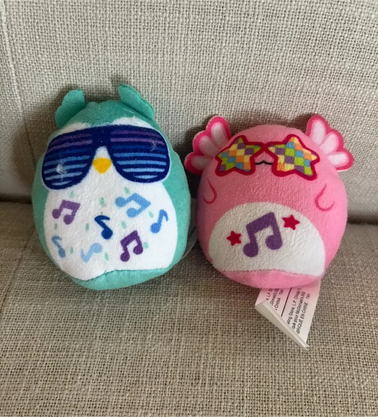 Two Squishmallows plush toys.