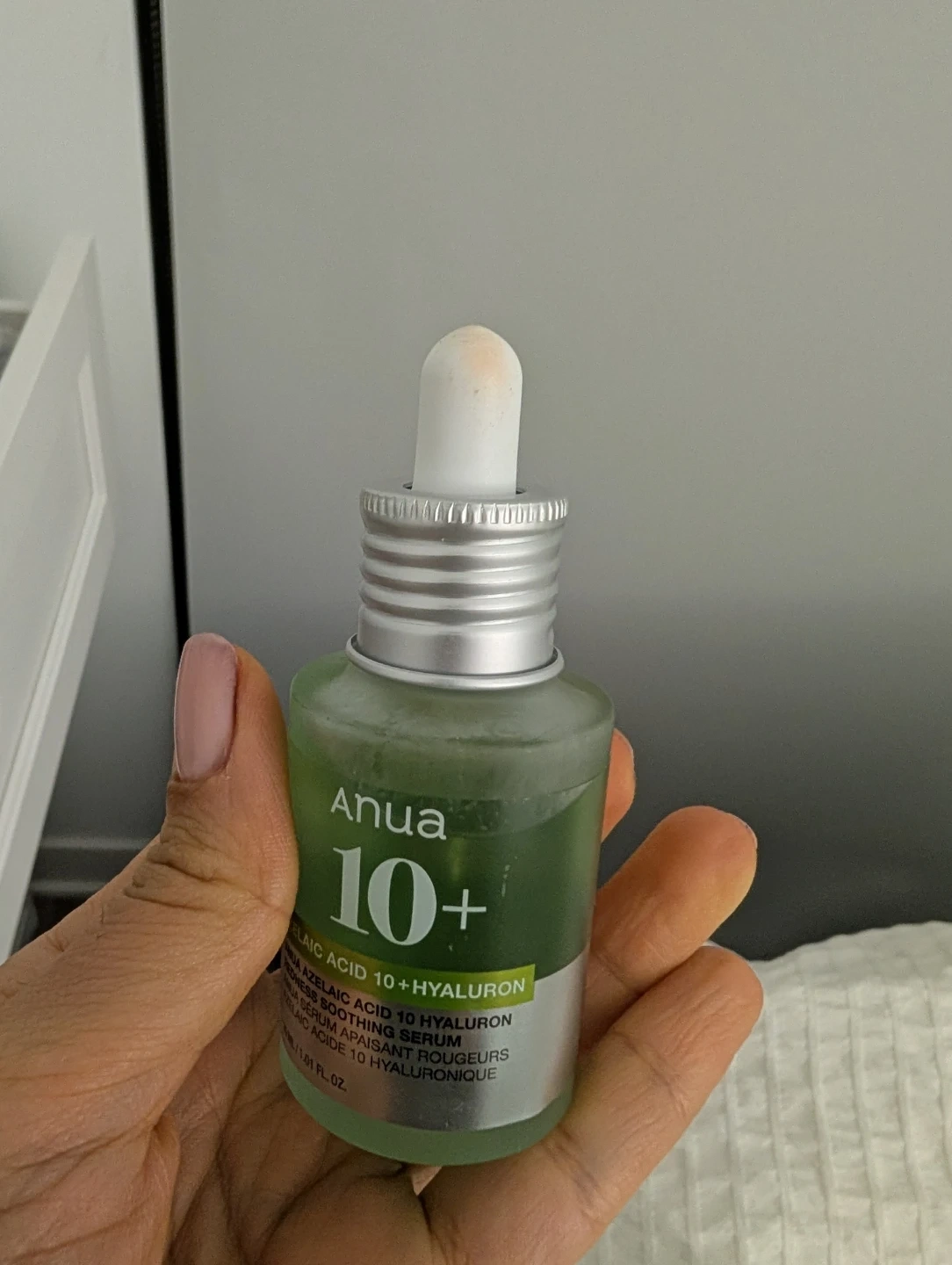 Anua 10+ Azelaic Acid + Hyaluron Soothing Serum. It's a redness-soothing serum. 1.01 fl. oz. bottle. Used once. Too drying for my skin. Pickup at the well.