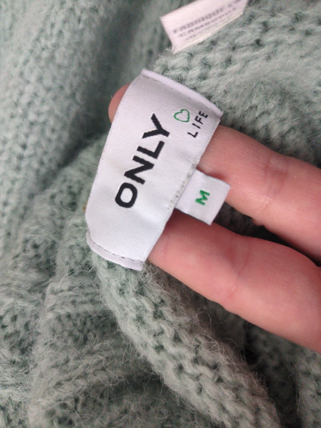 This is a mint green turtleneck sweater by ONLY Life. It's a size medium with a cozy knit texture. Perfect for cooler weather!