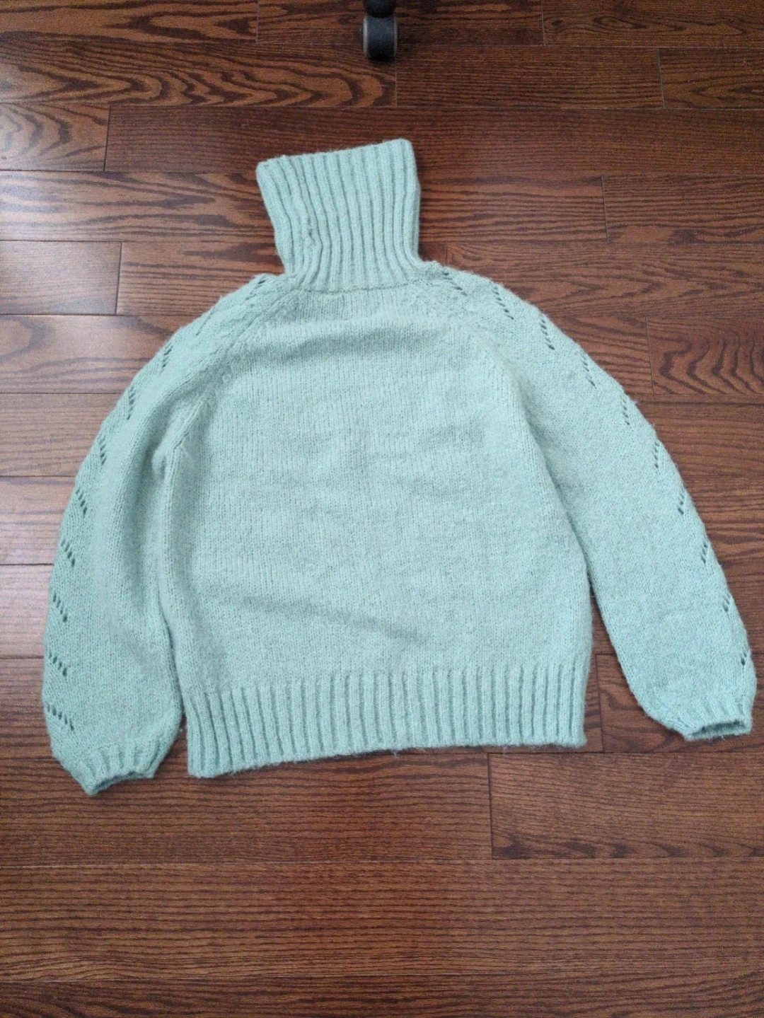 This is a mint green turtleneck sweater by ONLY Life. It's a size medium with a cozy knit texture. Perfect for cooler weather!