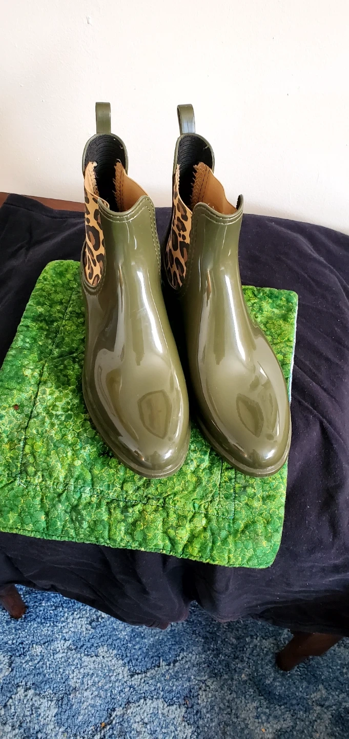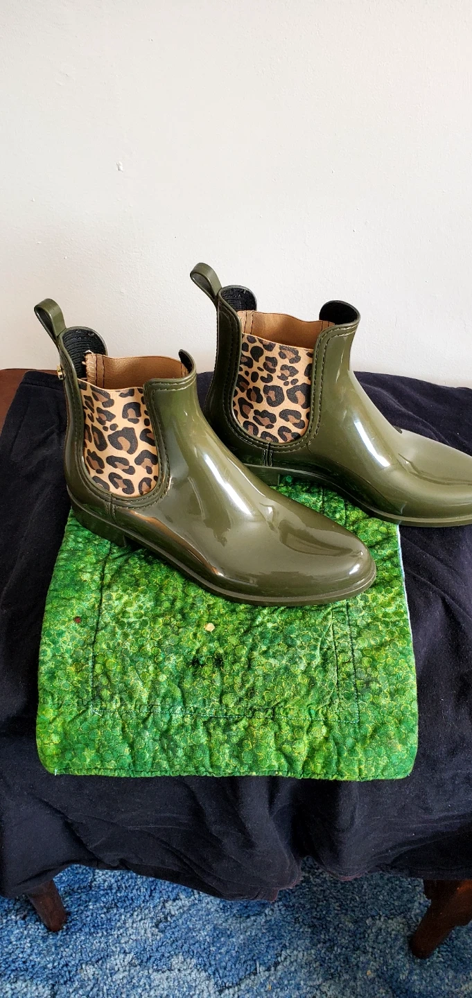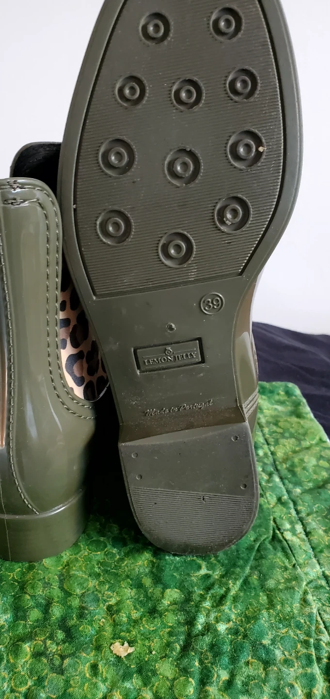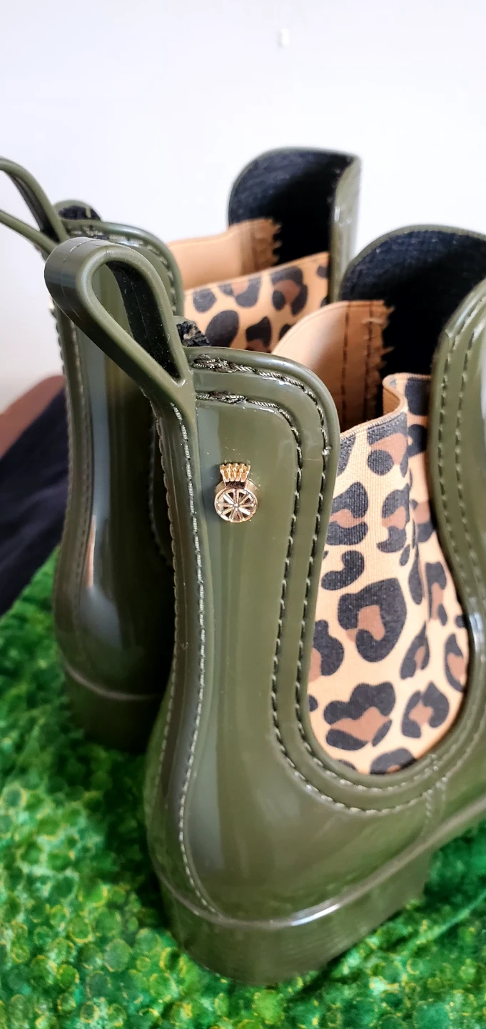 Lemon Jelly Olive Green Leopard Print Ankle Rain Boots Size 39