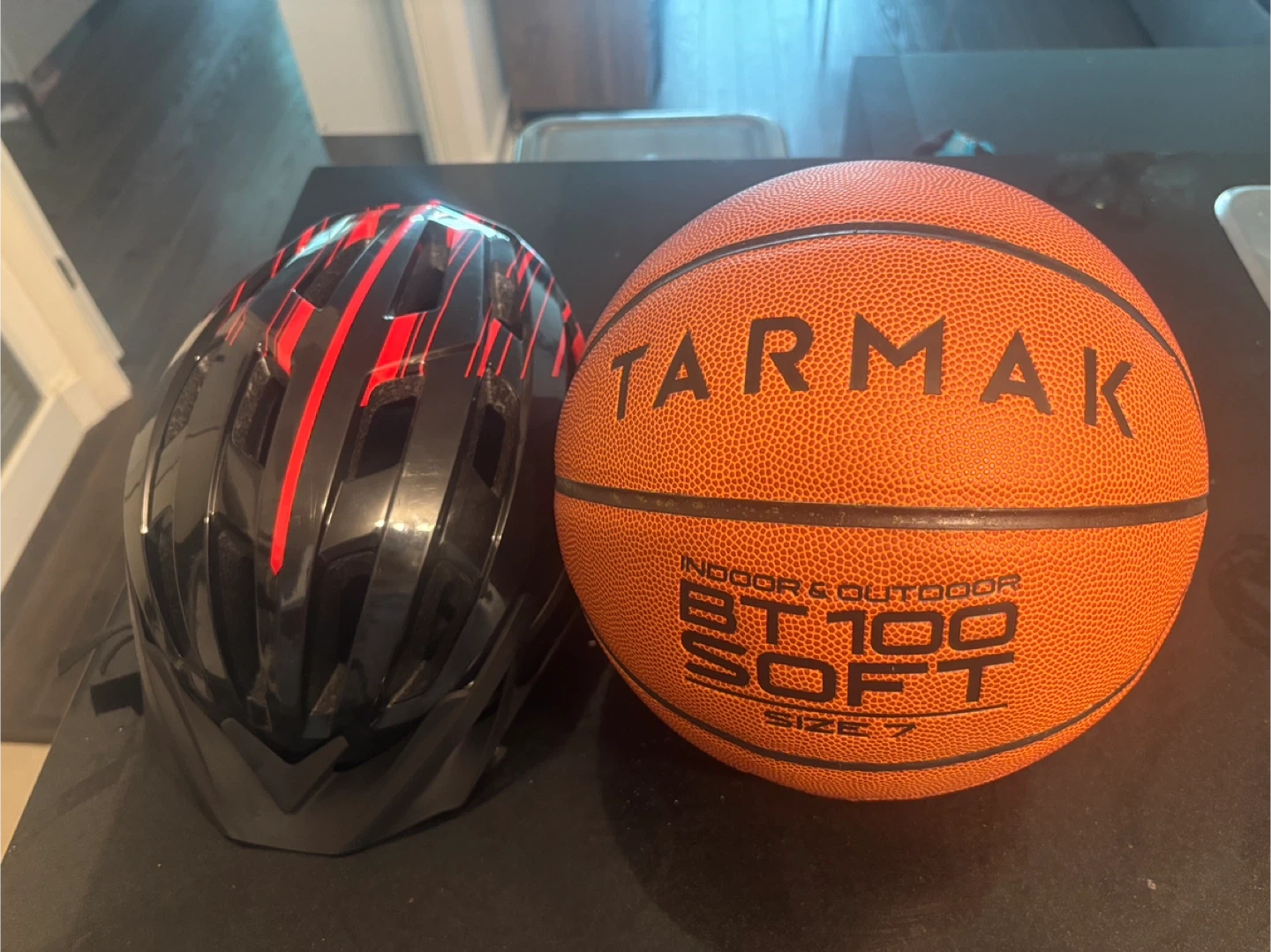 Orange Tarmak basketball, size 7. It's suitable for indoor and outdoor use. This ball is made for a softer feel. Great for pickup games or practice!