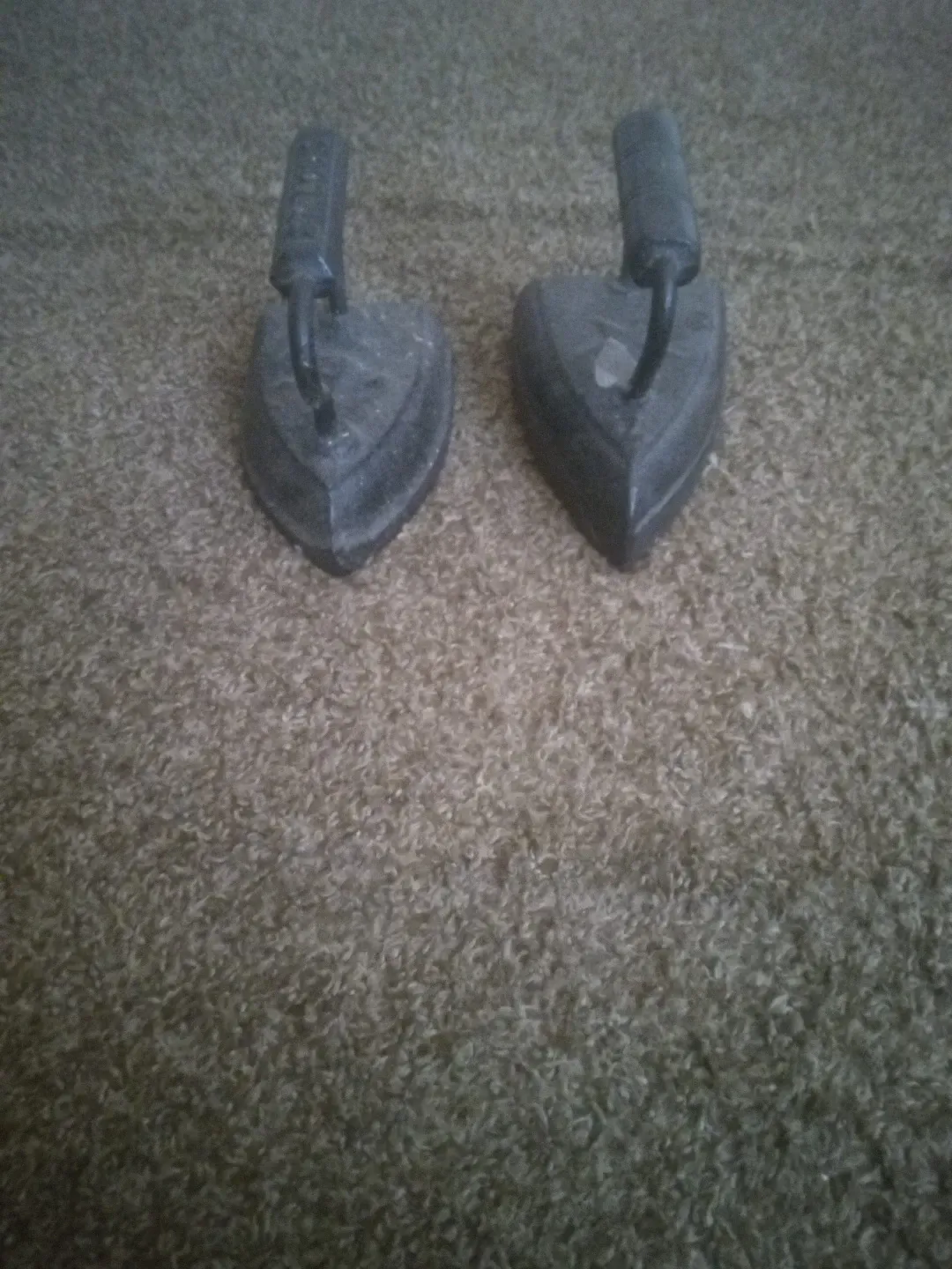 This listing is for a set of two vintage cast iron clothes irons. They appear to be made of heavy cast iron & handles. These irons are classic decorative pieces for home or sewing room decor. A great display item for anyone who collects antique housewares!