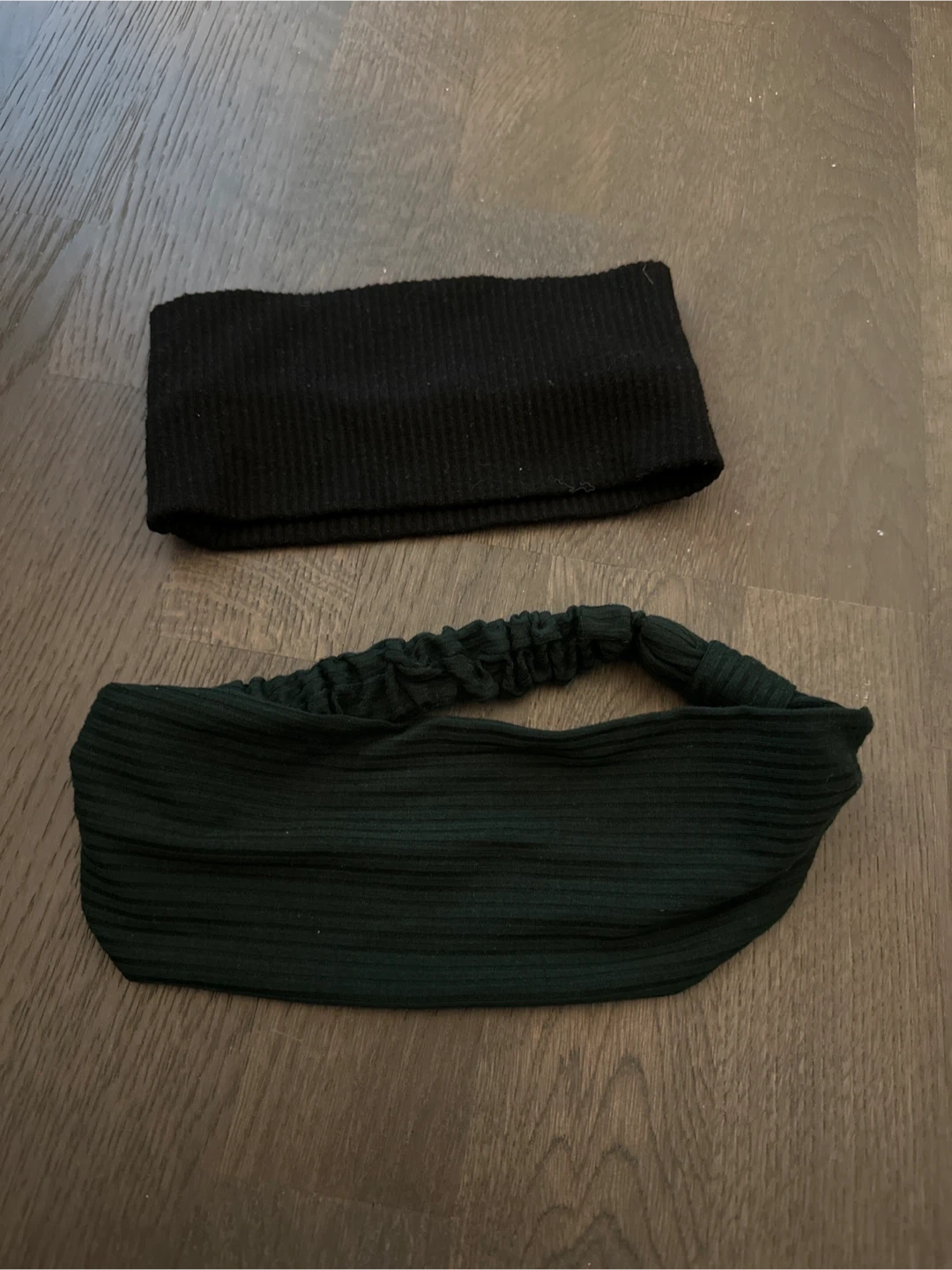 Set includes one black and one dark green ribbed headband. Both feature a soft, stretchy knit fabric for comfortable wear. One has an elasticized back for a secure fit.