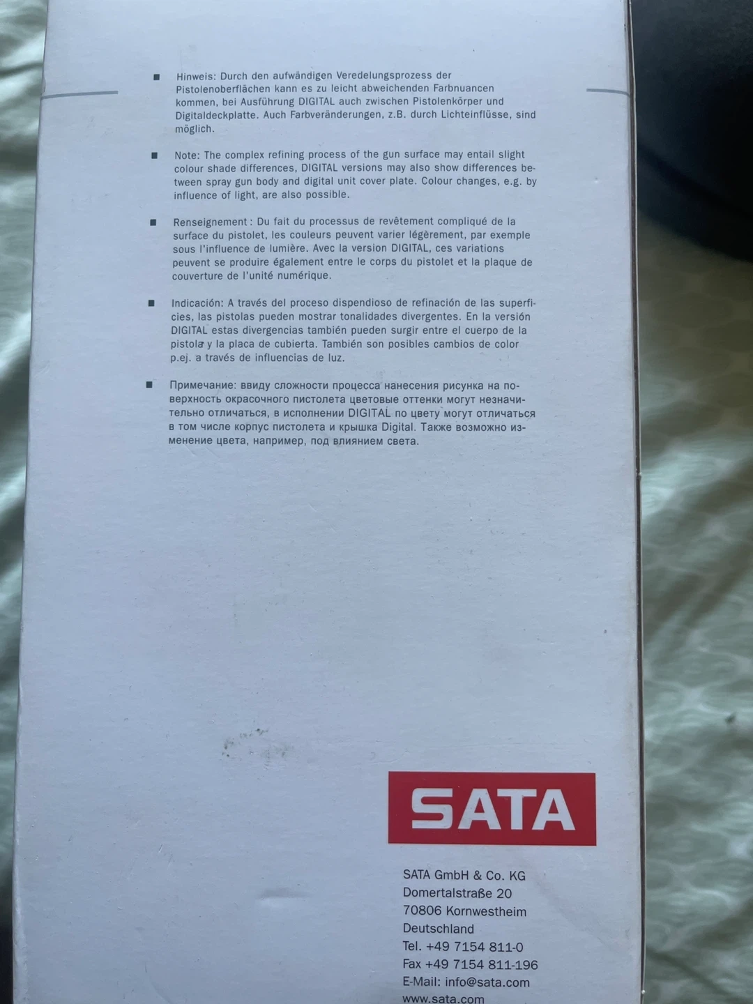 This is a SATA Jet 100 B F RP spray gun with a 0.3 I / 0.6 I / 0.9 I RPS multi-purpose cup. It's made in Germany by SATA. The cup size is 0.3, 0.6, or 0.9 L and it comes with three polyvalent godets.