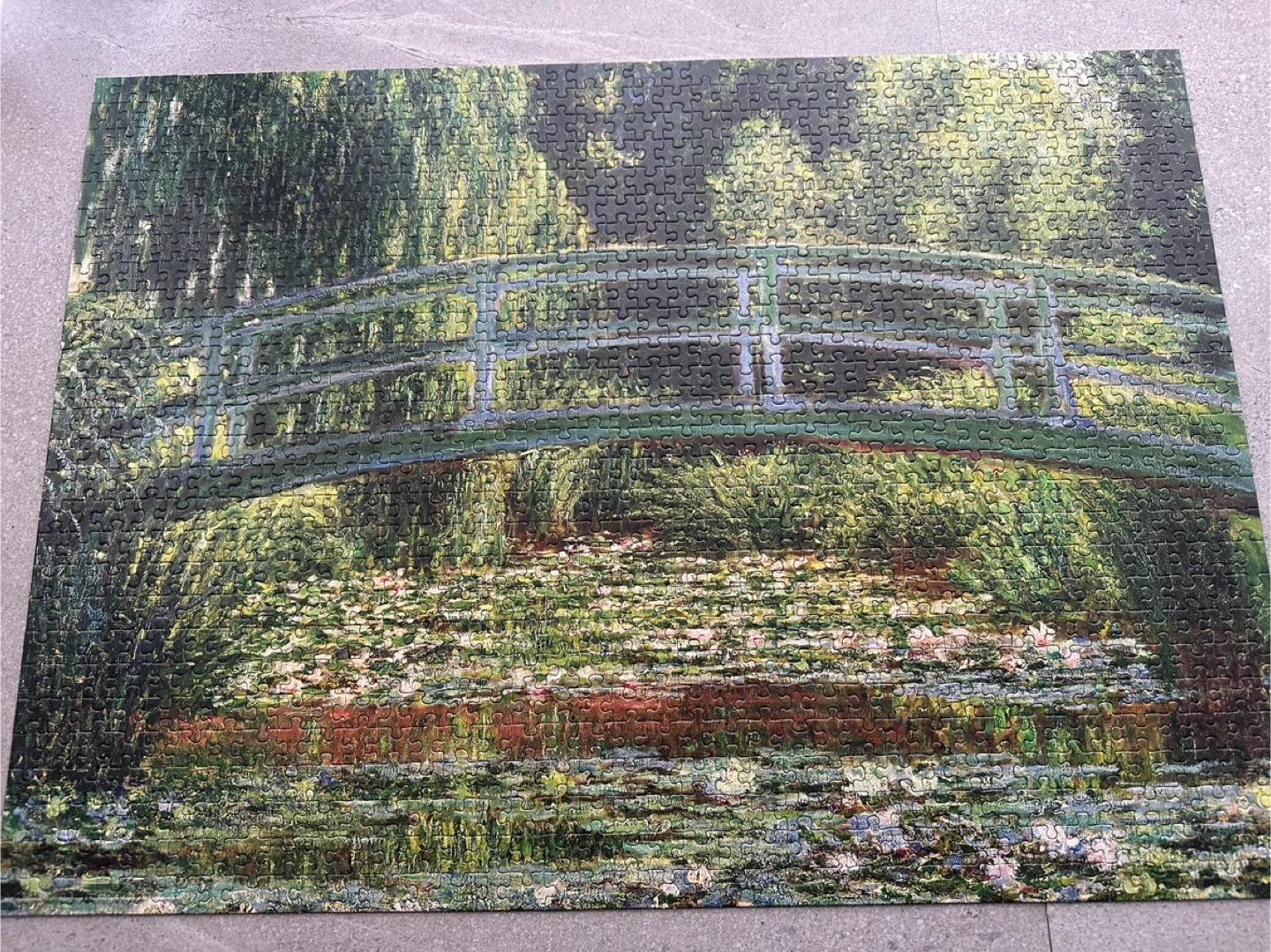 Eurographics 1000-piece jigsaw puzzle featuring Claude Monet's "The Japanese Footbridge". Museum Quality replica. Officially licensed. Imported.