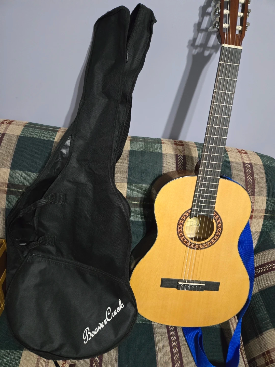 Selling a Beaver Creek classical guitar. It's a light wood colour. Includes a black gig bag for protection. Great for beginners!