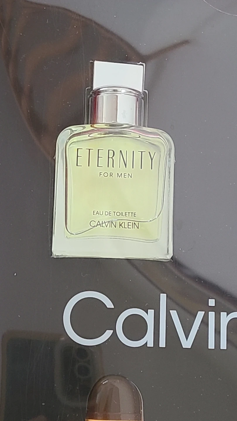This Calvin Klein gift set features four miniature men's fragrances. It includes Obsession for Men, Eternity for Men, Eternity for Men Aqua, and CK One.