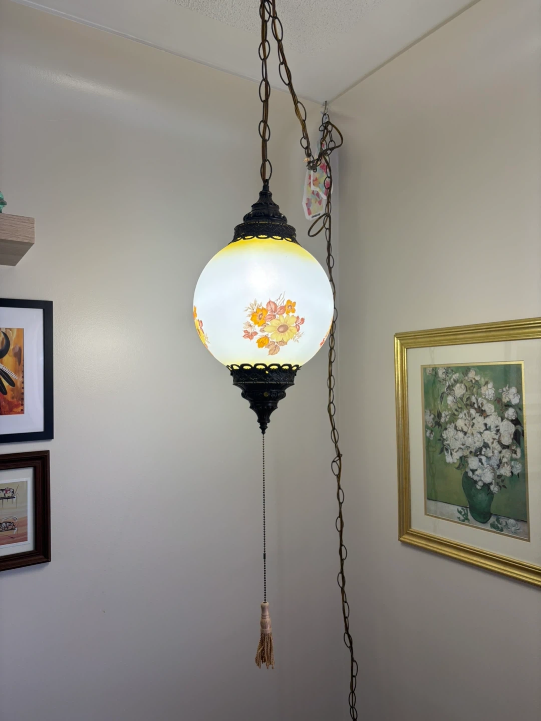 Vintage Hanging Globe Lamp with Floral Design